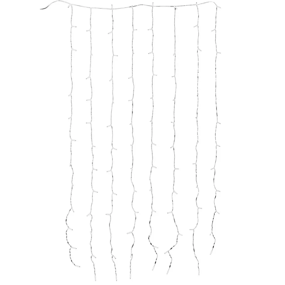 Rideau lumineux exterieur, guirlande lumineuse Noël pour décorer le jardin et l’extérieur de la maison. Équipé d’un contrôleur intégré pour gérer les différents jeux de lumière couleur blanc.Grâce au câble d’alimentation de 5 m, vous pourrez les installer facilement.Ce produit est conforme aux normes CE.Nombre d’ampoules : 120 LEDLongueur du câble d’alimentation (m) : 5Tension d’entrée : 220V/24VJeux de lumière : OuiDimensions câble des lumières (cm) : 300xH75