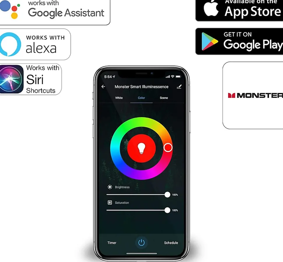 Donnez vie à votre monde avec de la couleur ! – Idéal pour tout environnement : fonctionne bien dans de nombreux endroits, y compris les chambres, les bureaux, les salons, les cuisines et derrière différents appareils.- Plus de 16 000 000 de possibilités de couleurs : notre gamme multicolore permet des options infinies pour créer entièrement un éclairage unique et personnalisable qui reflète le mieux votre espace.- Contrôlez vos lumières depuis n’importe où : utilisez l’application Monster Smart pour vous connecter directement à vos bandes et apporter des modifications sur votre téléphone depuis n’importe quel endroit à tout moment de la journée. Notre application est disponible sur l’App Store d’Apple et Google Play.- « Alexa ! Allume mes lumières à 19h30 : » Fonctionne avec Amazon Alexa, Google Assistant et Siri pour l’éclairage à commande vocale.- Programmez vos lumières pendant la journée : créez une programmation horaire qui reflète votre routine quotidienne ou tout changement qui se produit.- Vous pourrez installer rapidement votre bande en retirant le ruban adhésif de l’arrière et en le collant sur n’importe quelle surface pour une installation rapide.Compatible Razer ChromaPourquoi choisir Monster ?Monster est le premier fabricant mondial de produits électroniques pour le divertissement à domicile, l’audio, le cinéma maison et les jeux haute performance. Monster est aussi un innovateur de premier plan dans le domaine des accessoires mobiles et de l’audio professionnel. La société a été fondée par M. Noel Lee il y a plus de 30 ans, qui s’est engagé dès le début à créer des produits qui «améliorent littéralement le son de la musique», et elle n’a cessé de s’étendre et de se diversifier depuis.