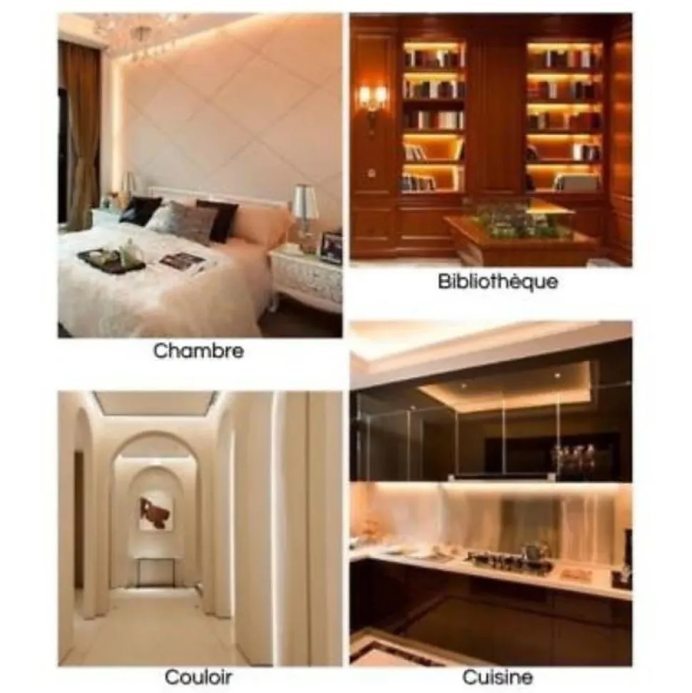 - 【Utilisation】Grâce aux LEDs recouvertes par une gaine, l’installation de ce ruban ne nécessite pas de profilé. Il est possible de le fixer sur une surface courbée car il est doté d’une bande adhésive double face au dos.