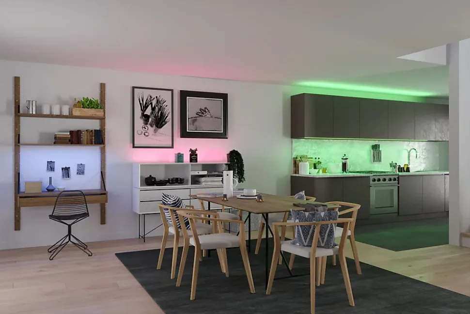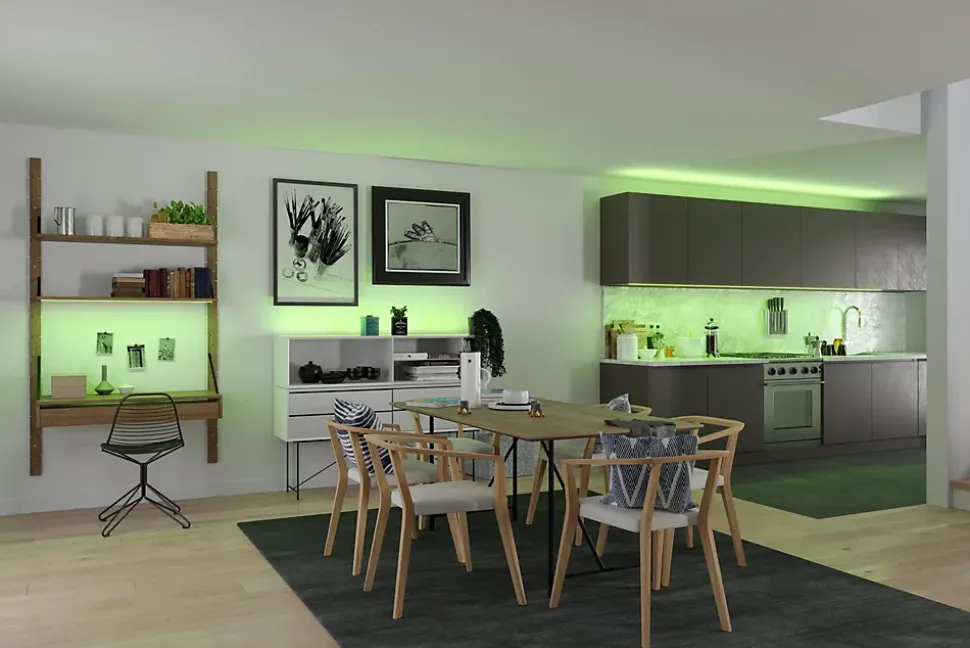 Grâce à URail, vous disposez d’une flexibilité totale en matière d’agencement lumineux et vous apportez la lumière partout où vous en avez besoin : luminaires en suspension modernes surplombant la table à manger, spots flexibles pour un éclairage ciblé des étagères, tableaux et postes de travail ou panneaux pour un éclairage d’intérieur uniforme avec une lumière blanc chaud ou blanc neutre. En tout, jusqu’à 40 mètres de rails et 1000 watts peuvent être reliés. URail étant un système Haute tension 230 V, il ne nécessite pas de transfo et se raccorde directement au réseau électrique. Vous pouvez déplacer facilement les projecteurs et suspensions sur les rails – ce qui est par exemple idéal pour éclairer de grandes tablées. Grâce à des accessoires intelligents, vous pouvez grader votre système sans variateur mural. L’intégration aux systèmes Smart Home se fait de la même façon. Selon la hauteur du plafond, vous pouvez choisir entre deux types de pose : les rails peuvent être directement posés au plafond ou sur des entretoises.