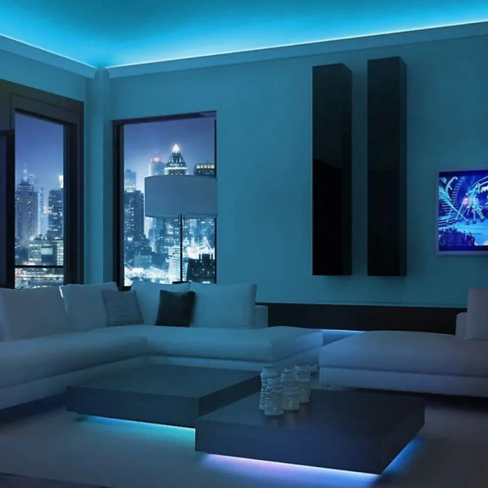 PRATIQUE ET MODULABLEVous pouvez installer ce Ruban LED Wi-Fi où vous souhaitez car le ruban est doté d’un adhésif double face 3M, ce qui vous permettra ainsi de l’accrocher très facilement, des supports de fixation sont également fournis avec le ruban. Le ruban étant flexible, vous avez la possibilité de l’utiliser sur des faces arrondies ou sur des angles, selon vos besoins. Attention toutefois si vous coupez le ruban (sécable tous les 30cm), vous devrez ensuite le sceller avec un adhésif spécial en silicone pour garantir son étanchéité.Une fois que le ruban LED est connecté à votre smartphone il est possible de le contrôler depuis l’extérieur, pour cela il vous suffira d’avoir une connexion internet. UN ÉCLAIRAGE CONNECTÉCréer des ambiances lumineuses selon vos envies n’a jamais été aussi simple avec notreRuban LED Wi-Fi RGB 5M 12V 5050 IP20 30LED/m. Ce ruban LED Wi-Fi vous permettra de faire des merveilles en créant différents styles d’ambiance (chaleureuse, festive, travail). Grâce à ses 5 mètres d’éclairage vous aurez la possibilité d’illuminer vos meubles, votre bureau ou votre plafond. Il est possible de couper cette bande LED si vous le désirez car elle est sécable tous les 30cm, vous pourrez ainsi ajuster sa longueur selon vos besoins.UNE LUMINOSITÉ PERSONNALISÉE
