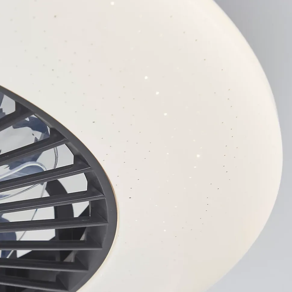 Démarquez-vous avec le plafonnier-ventilateur Salerno XXL, alliance du design et de la fonctionnalité. Avec un diamètre généreux de 58cm et une intensité lumineuse allant jusqu’à 6800 lumens, il assure un éclairage optimal dans votre intérieur. Quant à son design sobre et élégant, celui-ci s’intègre harmonieusement dans tous les espaces contemporains. Equipé de la toute dernière technologie d’éclairage LED à intensité réglable, il s’adapte à votre vie en vous offrant une lumière flexible passant d’une ambiance douce pour vos moments de repos à une clarté intense pour travailler. La technologie CCT permet également de régler la température de couleur de la lumière, du blanc chaud au blanc froid pour toujours plus de confort. La fonction RGB vous offre quant à elle, la possibilité de créer une atmosphère sur-mesure avec de nombreuses couleurs. Equipé d’un ventilateur intégré, votre plafonnier Salerno XXL assure une circulation d’air agréable dans votre pièce et dispose aussi d’un système de rotation vers l’avant et vers l’arrière ainsi que 6 niveaux de vitesses de ventilation. Marche avant (fonction été) : le ventilateur assure le rafraichissement de votre pièce et permet de maintenir une température ambiante confortable par temps chaud. Marche arrière (fonction hiver) : l’air chaud qui s’accumule au plafond est rabattu vers le sol, ainsi la chaleur est répartie de manière homogène et vous permet d’économiser des coûts de chauffage. Toutes ces fonctionnalités sont accessibles avec la télécommande incluse : couleur et intensité de la lumière, vitesse et rotation du ventilateur, veilleuse et même minuterie. Votre plafonnier-ventilateur Salerno XXL est équipé d’un moteur DC silencieux pour un haut niveau de confort dans votre maison.