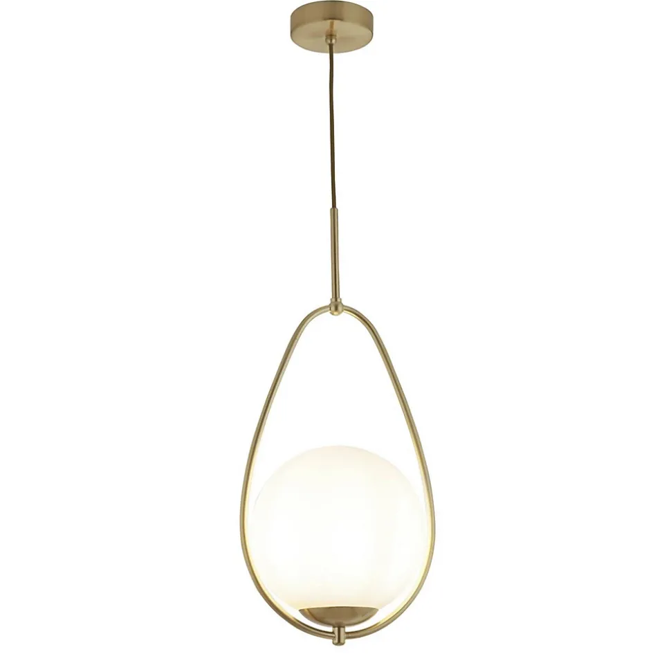 Searchlight Avalon – 1 Lumière Pendentif Or, Opale, Verre, E27Finition: Or | Matériau: acier | Indice de protection IP: IP20 | Hauteur (cm): 51 | Largeur (cm): 23 | Nombre de lumières: 1 | Type de lampe: E27 | Dimmable: Oui | Puissance (max): 60W | Classe: 1 (mise à la terre) | Ampoule incluse: non