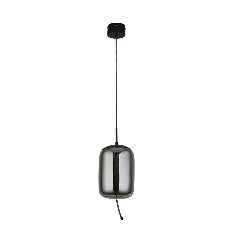 Searchlight Lisbon Suspension à 1 lumière DEL, noir et verre fumé 2700KFini : noir, verre fuméMatériau : acier doux, verreClassement IP : IP20Hauteur : 43 cmHauteur maximale : 150 cmDiamètre : 18 cmType de lampe : LED intégréeNombre de lampes : 1Ampoule incluse : OuiIntensité variable : non variableKelvin : 2700K (Blanc très chaud)Lumens : 121LmPoids : 1,14 kgPuissance (max): 6W