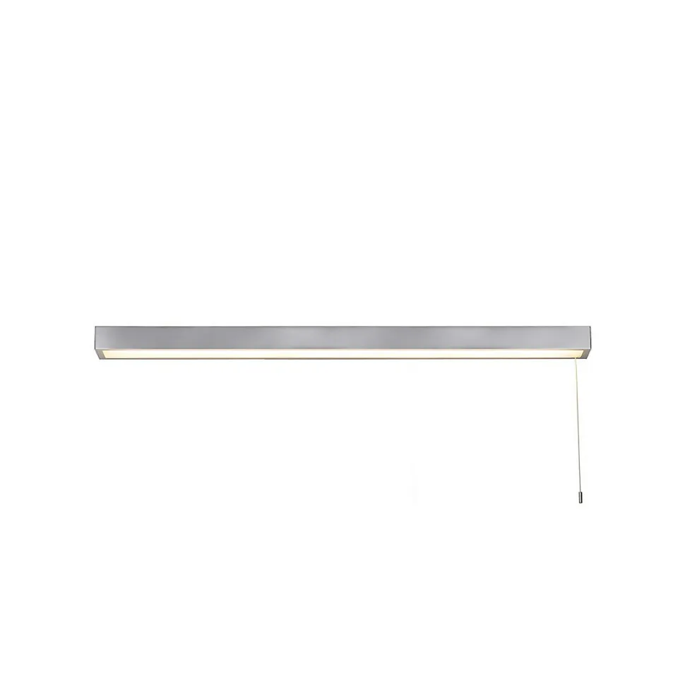 Searchlight Venti Applique Murale Chrome Poli, Polycarbonate DépoliFinition : Chrome,BlancMatériau : aluminium et acier douxIndice IP : IP44Hauteur : 4,5 cmLargeur : 90 cmProjection : 8 cmType de lampe : LEDNombre de lampes : 1Ampoule incluse : Oui – LED intégréeIntensité variable : nonKelvins : 3 000 KLumens : 1113lmPoids : 2 kgPuissance (maximale) : 25,68 WCommuté : Oui – interrupteur à tirette