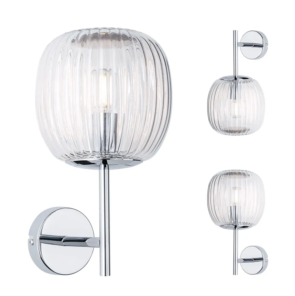 Matériau: Verre / Métal|Protection IP : IP44 – Protection contre les projections d’eau|Ne pas oublier : Commandez l’ampoule adaptée (E14) en même temps !|La gamme Ruya propose différents types de luminaires pour les murs, les plafonds ou les miroirs|Des effets lumineux décoratifs mettent le mur en scène