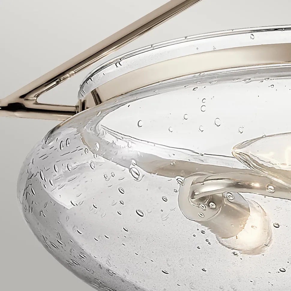 La forme distinctive du récipient en verre décoratif confère à ce plafonnier semi-affleurant Belle à 3 lumières son joli style. Le verre clair grainé s’associe aux bras épurés en nickel poli, créant un style qui convient parfaitement à des pièces au décor traditionnel modernisé.