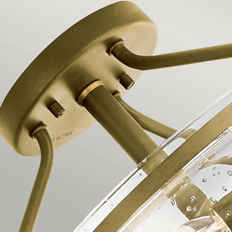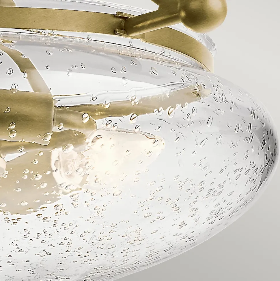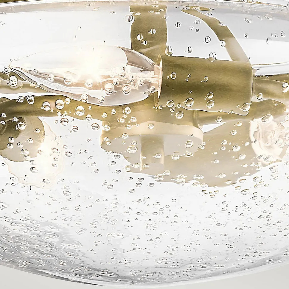 La forme distinctive du récipient en verre décoratif confère à ce plafonnier semi-affleurant Belle à 3 lumières son joli style. Le verre clair grainé s’associe aux bras épurés en laiton naturel brossé, créant un style qui convient parfaitement à des pièces au décor traditionnel modernisé.
