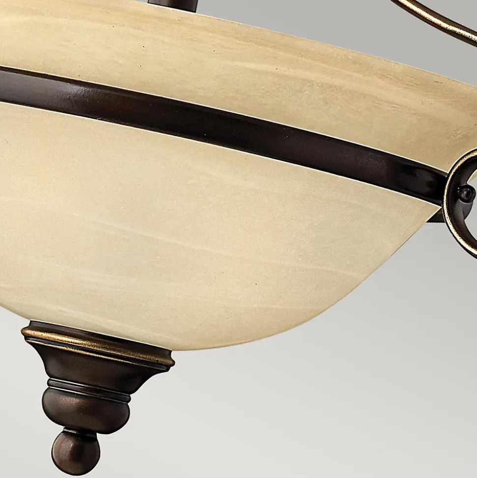Le design traditionnel audacieux et modernisé de Cello présente des supports courbés fluides et gracieux dans une finition bronze antique avec des reflets anciens sophistiqués et un verre vintage en faux albâtre.