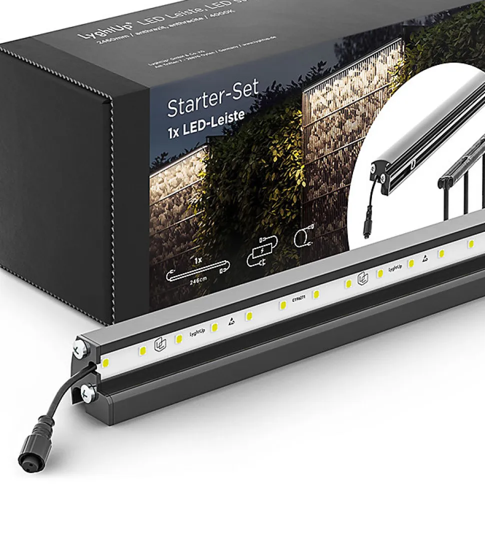 Ajoutez de l’éclairage à votre clôture en métal / gabion avec ce kit LyghtUp Led. Longueur : 1960 m/mTempérature de l’éclairage : Led blanc – chaleureux – 4 000 kVoltage d’entrée : + 24V DCElectricité d’entrée : 0,75 APuissance : 18 WNombre de led : 144Type de led : SMD 2835CRI : 80 RAbarette led étanche IP67Fixation avec visserie et plaquettes de 60 mm en inox fournies.Kit comprenant : 1 tranformateur / 1 prolongateur / 1 barette LED AnthraciteMarque : LyghtUP