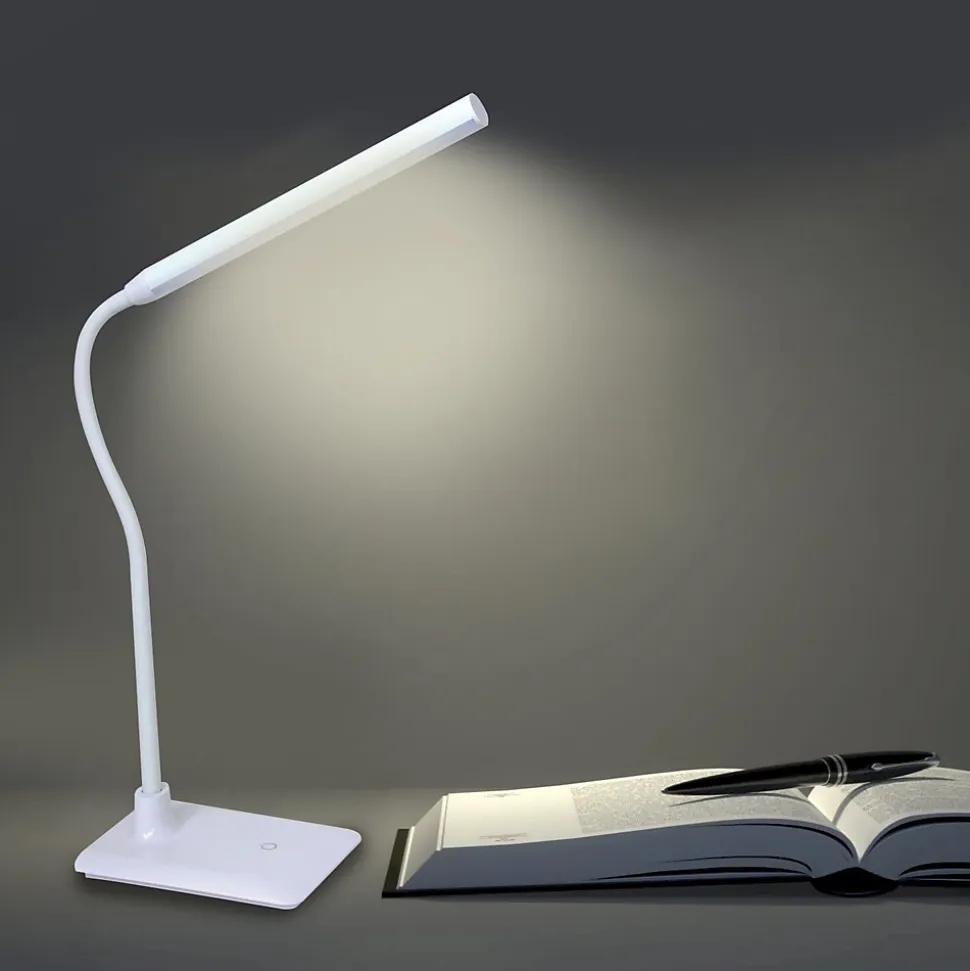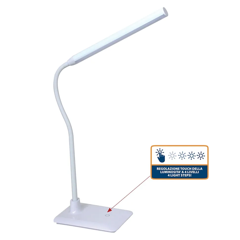 Lampe de bureau LED – lampe de bureau avec lumière naturelle 4000K; conçue pour réduire la fatigue oculaire et assurer un confort de lecture maximal; grâce au bras réglable, dirigez la lumière où vous voulez; idéal pour bureau, table, bureau etc. Réglage de la luminosité : grâce à un interrupteur tactile moderne situé à la pointe de la lumière. Choisissez facilement entre 4 différents niveaux d’éclairage, le plus approprié. Alimentation externe (transformateur AC/DC) pour plus de sécurité. Éclairage efficace et non agressif : diffuse une lumière diffuse, non éblouissante et sans scintillement. Par conséquent, il n’est pas fatiguant pour les yeux. Les ampoules LED SMD utilisent seulement 6 watts de puissance pour produire 510 lumens de lumière : efficace et sans gaspillage. Économisez de l’argent et de l’énergie avec une solution LED longue durée.