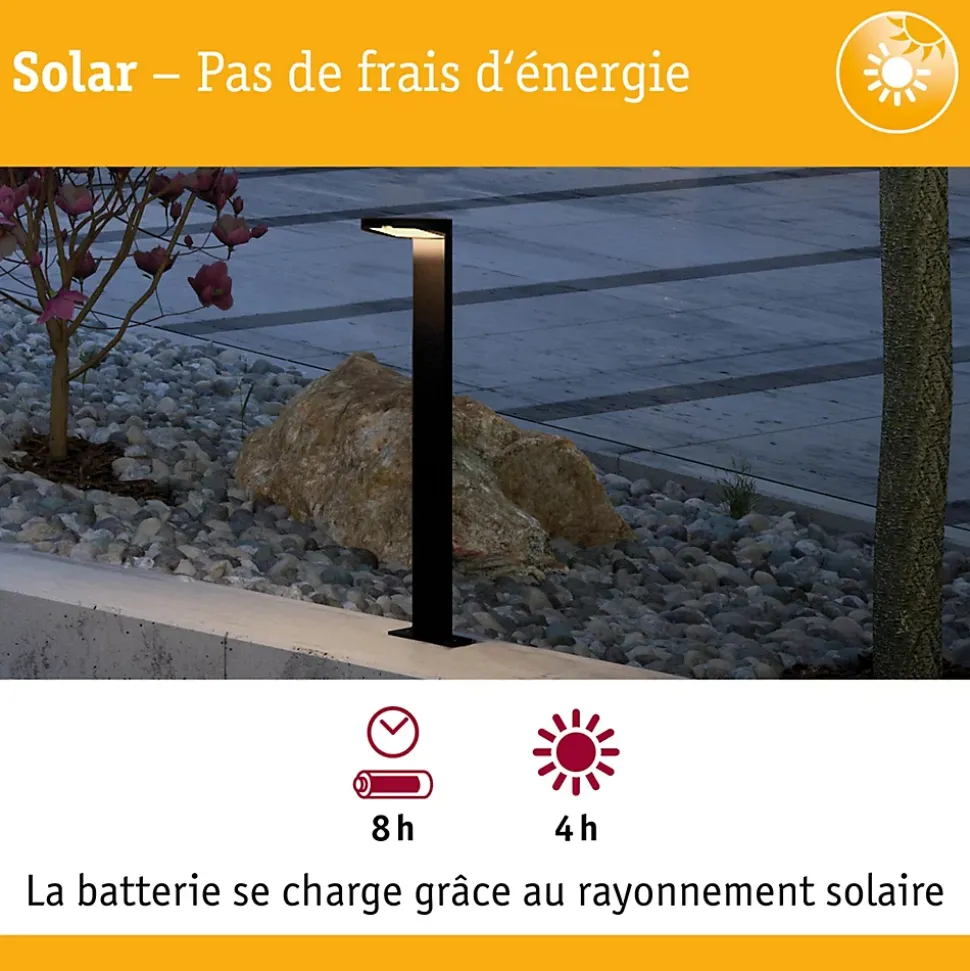 La Lampe solaire Ryse en Anthracite illumine vos allées. Grâce à la technologie solaire, aucune alimentation électrique n’est requise. Durant la journée, la batterie se recharge au soleil et dès la nuit tombée, une lumière fonctionnelle se déclenche dès que l’on s’en approche.
