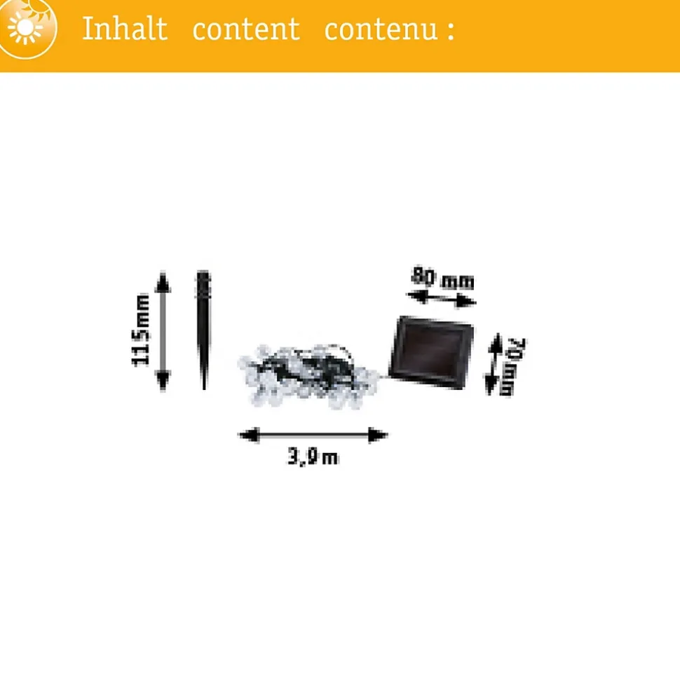 La guirlande LED Soala rehausse n’importe quel espace extérieur. Avec une lumière blanc chaud de 3000 kelvins, elle crée une atmosphère conviviale où l’on a envie de séjourner. Avec une longueur de 3,90 mètres et 30 LED fixes, la guirlande Soala attire tous les regards. Protégée contre les aspersions selon l’IP44, elle convient pour une utilisation à l’extérieur. Autre avantage : le détecteur crépusculaire intégré qui veille à ce que la guirlande s’allume automatiquement au coucher du soleil. La fonction solaire permet un fonctionnement de la guirlande indépendamment de toute source d’alimentation électrique.