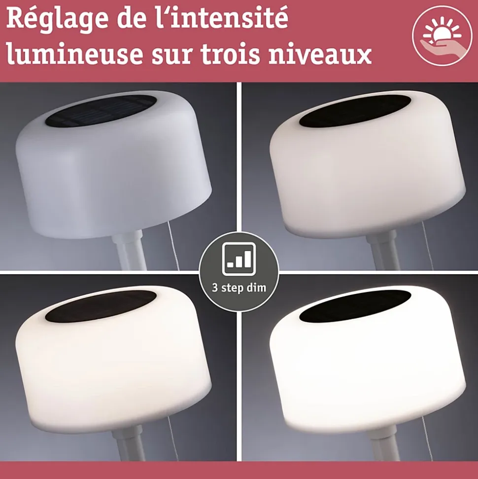 Rechargeable par panneau solaire intégré ou raccordement USB-C|Température de couleur: 2700K – Blanc chaud|Intégration parfaite dans l’environnement grâce à la dimension compacte et le coloris intemporel du boîtier|le type de protection: IP44 – convient pour locaux humides ou extérieur