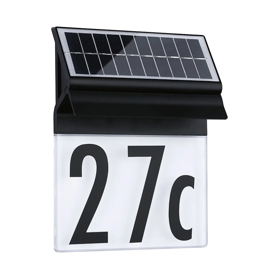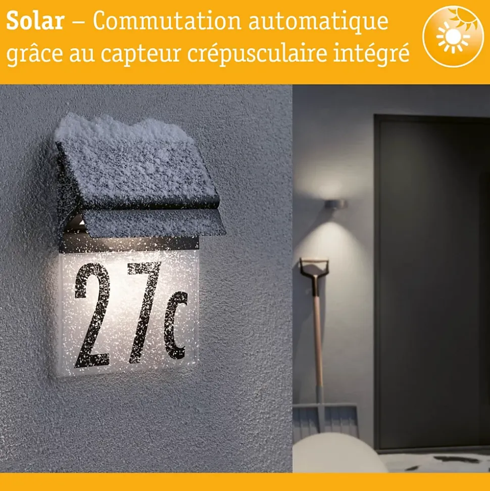 Le numéro de maison lumineux Outdoor Solar bénéficie de la protection IP44 qui le préserve spécifiquement contre l’infiltration d’humidité ou de poussière. Grâce à la technologie solaire, aucune alimentation électrique n’est requise. En effet, sa batterie se recharge sous les rayons du soleil durant la journée et l’énergie emmagasinée fait fonctionner l’ampoule la nuit. Avec une charge totale, le système illumine le numéro de maison pendant une durée maximale de 10 jours. De plus cet accroche-regard décoratif apporte une aide non négligeable à vos visiteurs ou votre facteur, lorsqu’ils recherchent dans l’obscurité le bon numéro de porte. Les chiffres et lettres en noir sobre fournis formeront la combinaison souhaitée que vous collerez ensuite sur le luminaire.