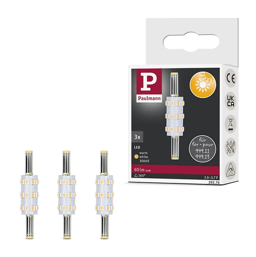 Kit de 3 culots enfichables LED|Ampoules de rechange pour guirlande Solar Taina en 3,7 V (94911)|Température de couleur : 3000K – blanc chaud|pour une utilisation durable et respectueuse des ressources