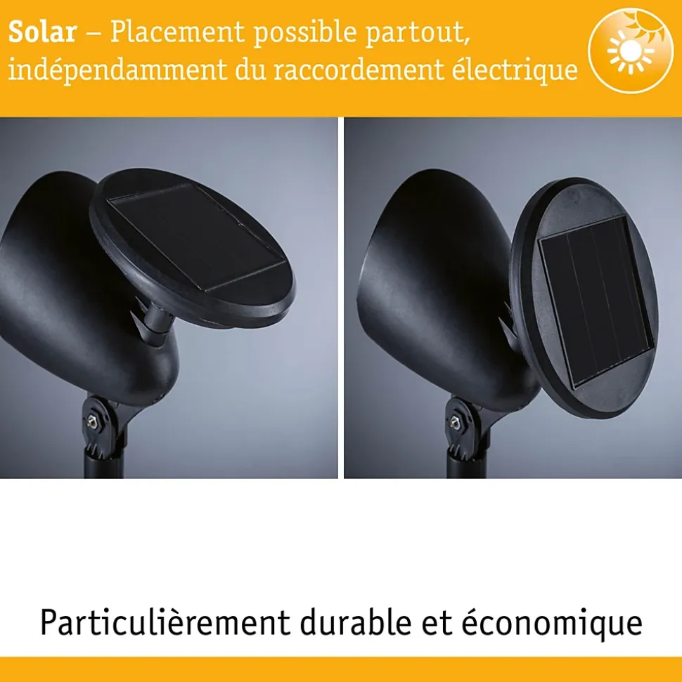 Le spot de jardin LED Solena est un formidable complément pour l’extérieur. Avec une ampoule LED intégrée de température de couleur blanc chaud, 3000 K. Le spot est livré avec un piquet à planter et peut être planté dans le sol en toute facilité. Grâce à l’indice IP44, il est protégé contre les aspersions, et convient donc parfaitement à une utilisation en plein air. Autre fonction pratique : le détecteur crépusculaire intégré qui veille à ce que le spot s’allume automatiquement au coucher du soleil. La LED est fixe et peut être orientée de manière pour que la lumière brille exactement là où on en a besoin. Le spot fonctionne sur l’énergie solaire, ce qui signifie qu’aucune alimentation électrique supplémentaire n’est nécessaire. D’une manière générale, le spot de jardin LED Solena est un excellent choix pour tous ceux qui veulent éclairer leurs extérieurs de manière simple et efficace.