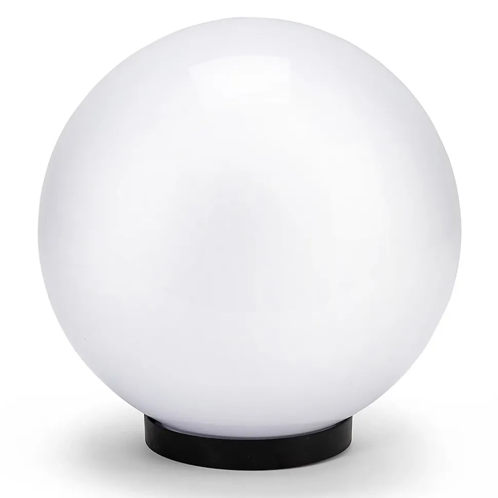 Globe d’extérieur IP44, diamètre 200 mm. Compatible avec les ampoules LED jusqu’à 40 W. Culot E27. Ampoule non incluse. Diffusion 360°. Matériau : PMMA. Le PMMA est un polymère hyper résistant aux chocs et au temps. Se connecte directement à la tension secteur. Velamp est une entreprise italienne qui répond de ses produits : méfiez-vous des imitations.