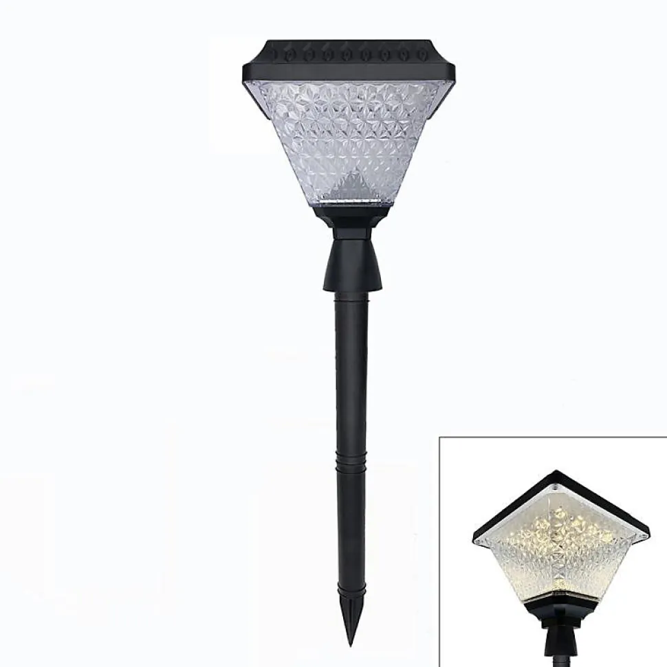 - [Fonctionnement] Il suffira de planter le piquet de la lampe et d’appuyer sur le bouton ON afin de faire fonctionner la lampe. Elle est dotée d’un capteur crépusculaire intégré et allume automatiquement les LED lorsque l’obscurité est détectée et les éteint lorsque la lumière est détectée.
