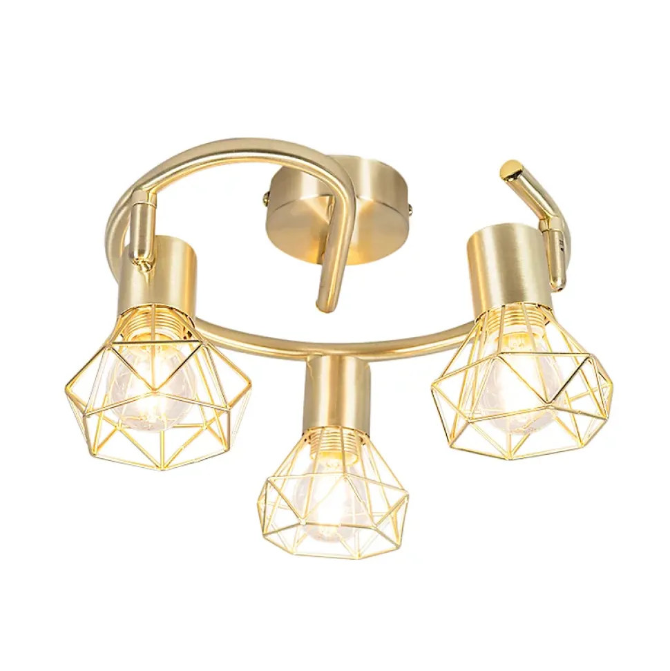 Voici le spot Mosh 3 dans une finition dorée/laiton ! Le cadre minimaliste en acier est parfait pour une source de lumière décorative qui se fait remarquer ! Cette lumière peut également être atténuée à l’aide d’un variateur externe (non inclus) pour créer encore plus d’ambiance. Soyez un pionnier et éclairez votre maison ou votre bureau avec style ! Ce spot peut être facilement ajusté grâce à la rotule. Cela permet à ce plafonnier de pointer dans toutes les directions. Il a une hauteur de 18,5 cm et un diamètre de 43 cm. La plaque de montage a un diamètre de 8 cm. Ce spot est doté de trois petites douilles E14 et est fourni sans ampoule, il est donc important de les commander également (40W maximum par source lumineuse). Complétez votre intérieur avec le Mosh 3 !