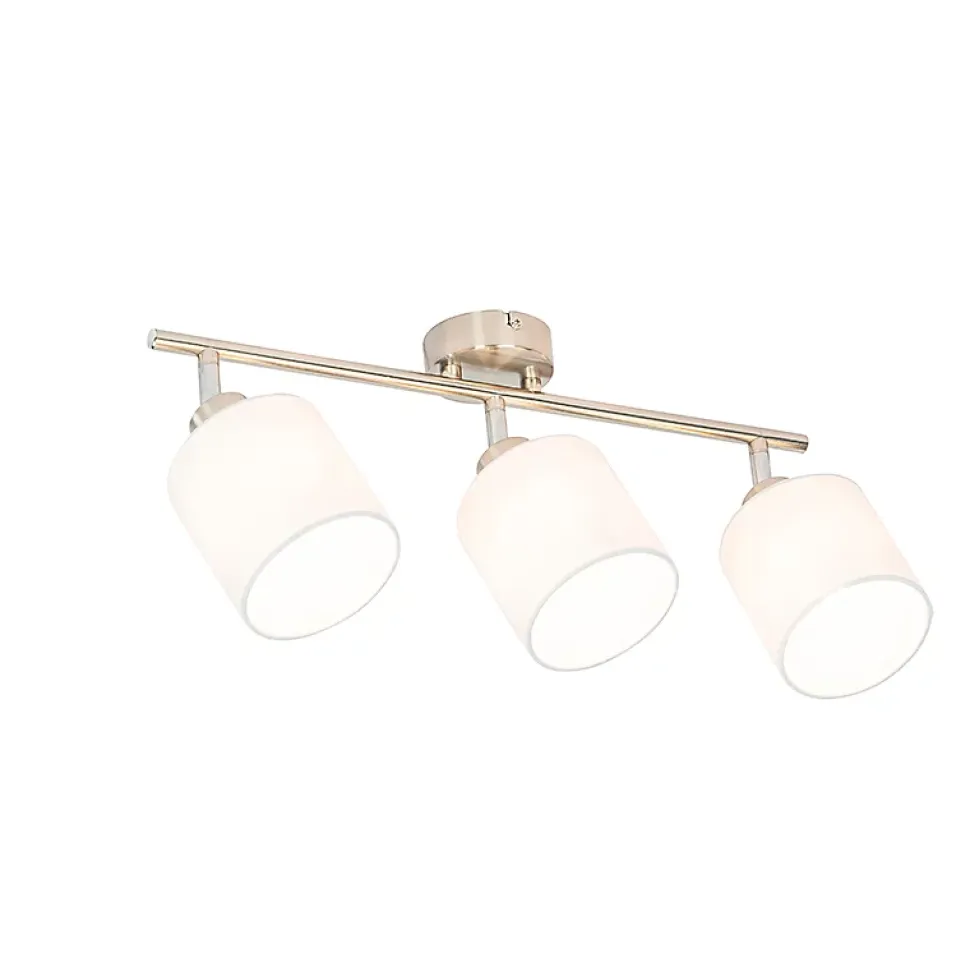 Un spot de plafond moderne et élégant pour votre intérieur ! Il est en acier et ses abat-jour en tissu blanc sont intemporels. Le diffuseur permet également de ne pas regarder directement la lumière, ce qui procure une lumière agréable et diffuse. Les spots peuvent être orientés séparément, vous pouvez donc choisir où diriger la lumière. Hetta mesure 21 cm de haut, 63 cm de long et 10 cm de large. La plaque de montage a un diamètre de 8 cm et une hauteur de 2,5 cm. Vous pouvez compléter Hetta avec trois ampoules E14 (15W maximum), à commander séparément. La lampe est compatible avec un variateur externe (non inclus). Vous pouvez ainsi créer l’ambiance idéale dans votre salon ou votre chambre ! Donnez un coup de peps à votre intérieur avec ce spot Hetta moderne.