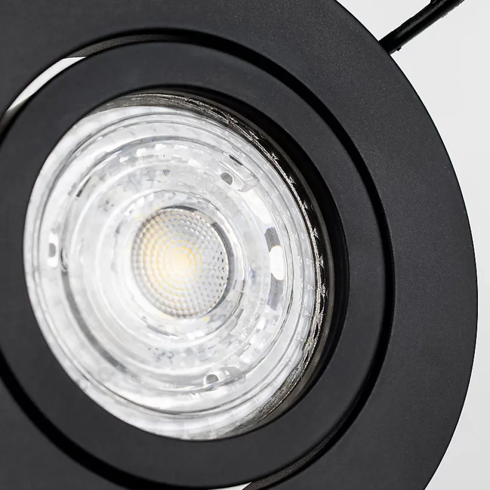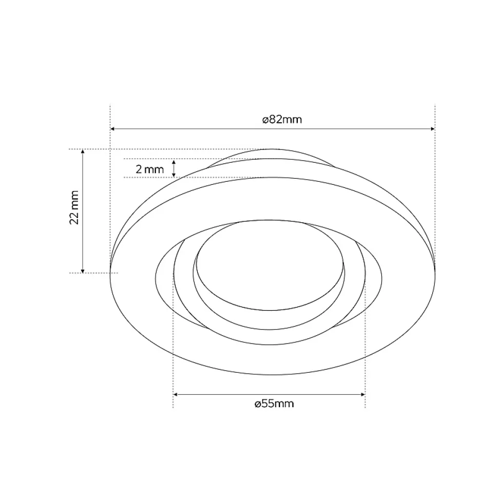 Spot encastrable au plafond AKTYN 1 OV Noir IP20. Rond noir et moderne ce spot halogène encastrable est une solution fonctionnelle adaptée aux intérieurs contemporains — du couloir à la cuisine ou à la chambre.Données généralesApplication : intérieurType de montage : encastréEmplacement d’installation : plafondCouleur : noirFinition : mateMatériau : aluminiumDimensions [mm] :- largeur : Ø82 mm- longueur : — diamètre de l’anneau : Ø55 mm- hauteur : 2 mm- hauteur totale : 22 mm- ouverture de montage : Ø70 mmOrientable : ouiVolet : -Douille incluse : nonType de douille : GU10 / Gx5.3Nombre de douilles : 1Source lumineuse incluse : nonDonnées techniquesPuissance maximale [W] : 35 WTension nominale [V] : 220-240 V AC / 12 V DCFréquence nominale [Hz] : 50-60 HzIndice de protection (IP) : IP20Classe de protection : II / III