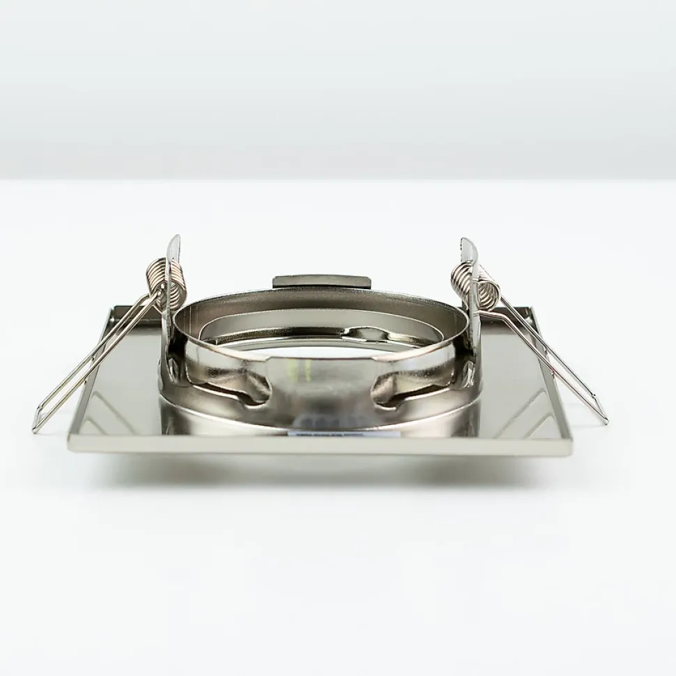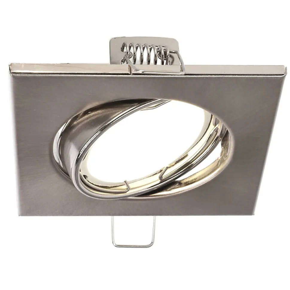 Spot encastrable au plafond orientable VIERA Nickel IP20. Carré finition nickel brillante et design moderne. Ce spot halogène encastré s’adapte parfaitement aux intérieurs contemporains.Données généralesApplication : intérieurType de montage : encastréEmplacement d’installation : plafondCouleur : nickelFinition : brillantMatériau : acierDimensions [mm] :- largeur : 86 mm- longueur : 86 mm- diamètre de l’anneau : Ø56 mm- hauteur : 4 mm- hauteur totale : 26 mm- ouverture de montage : Ø70 mmOrientable : ouiVolet : -Douille incluse : nonType de douille : GU10 / Gx5.3Nombre de douilles : 1Source lumineuse incluse : nonDonnées techniquesPuissance maximale [W] : 35 WTension nominale [V] : 220-240 V AC / 12 V DCFréquence nominale [Hz] : 50-60 HzIndice de protection (IP) : IP20Classe de protection : II / IIIContenu en mercure : nonTempérature ambiante [°C] : -20…50℃