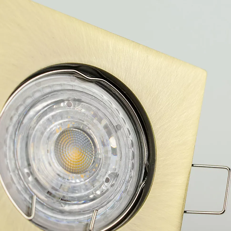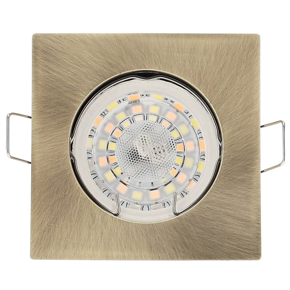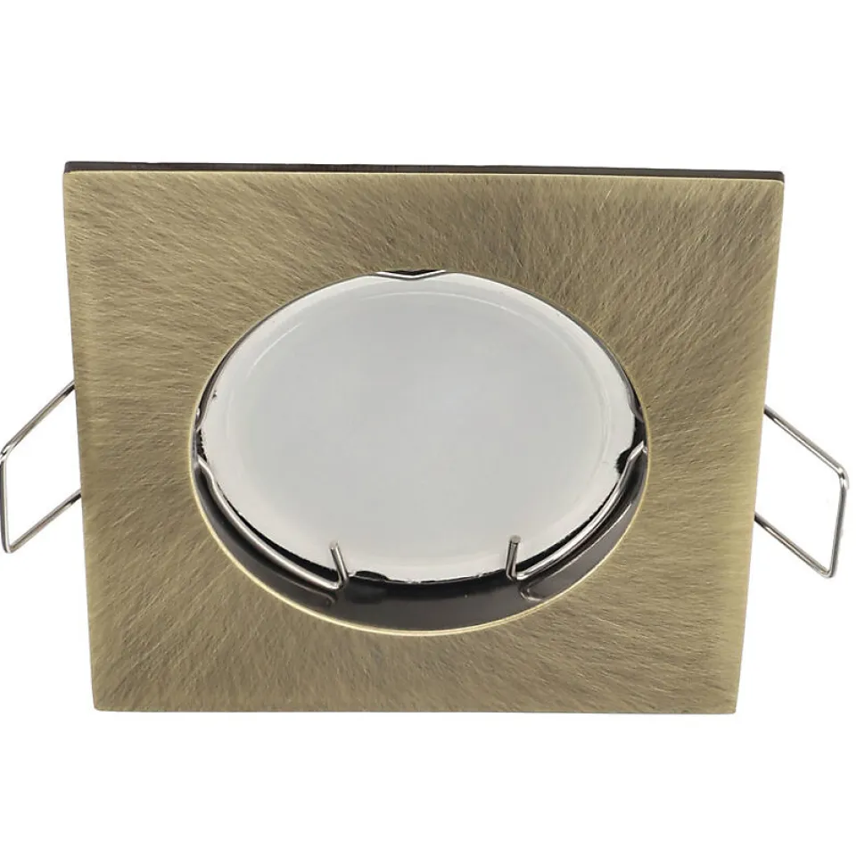 Spot encastrable au plafond RAMI Laiton IP20. Carré laiton moderne — spot halogène encastré. Solution fonctionnelle pour des intérieurs contemporains.Données généralesApplication : intérieurType de montage : encastréEmplacement d’installation : plafondCouleur : laitonFinition : brillantMatériau : aluminiumDimensions [mm] :- largeur : 78 mm- longueur : 78 mm- hauteur : 2 mm- hauteur totale : 24 mm- ouverture de montage : Ø65 mmOrientable : nonVolet : -Douille incluse : nonType de douille : GU10 / Gx5.3Nombre de douilles : 1Source lumineuse incluse : nonDonnées techniquesPuissance maximale [W] : 35 WTension nominale [V] : 220-240 V AC / 12 V DCFréquence nominale [Hz] : 50-60 HzIndice de protection (IP) : IP20Classe de protection : II / III
