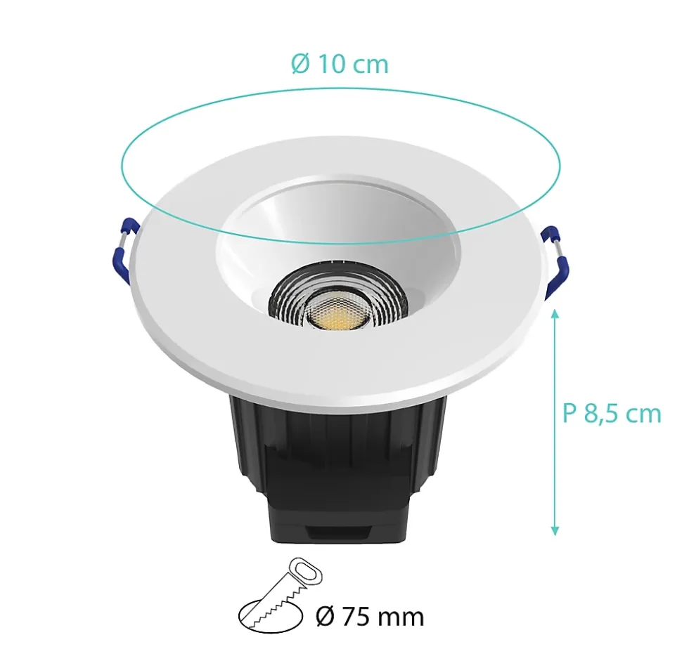 Dimensions du produit (L x l x h) : 10 cm x 10 cm x 8,5 cm ; Poids : 0,16 Kilogrammes ; Watt : 9W ; Batterie(s) / Pile(s) requise(s) : non ; Type de piles : non ; Matière : Aluminium ; Couleur : Blanc ; Couleur de la lumière : Blanc ; Kelvins : 2700K ; Lumens : 500 ; Etanche : non ; Indice de protection IP :