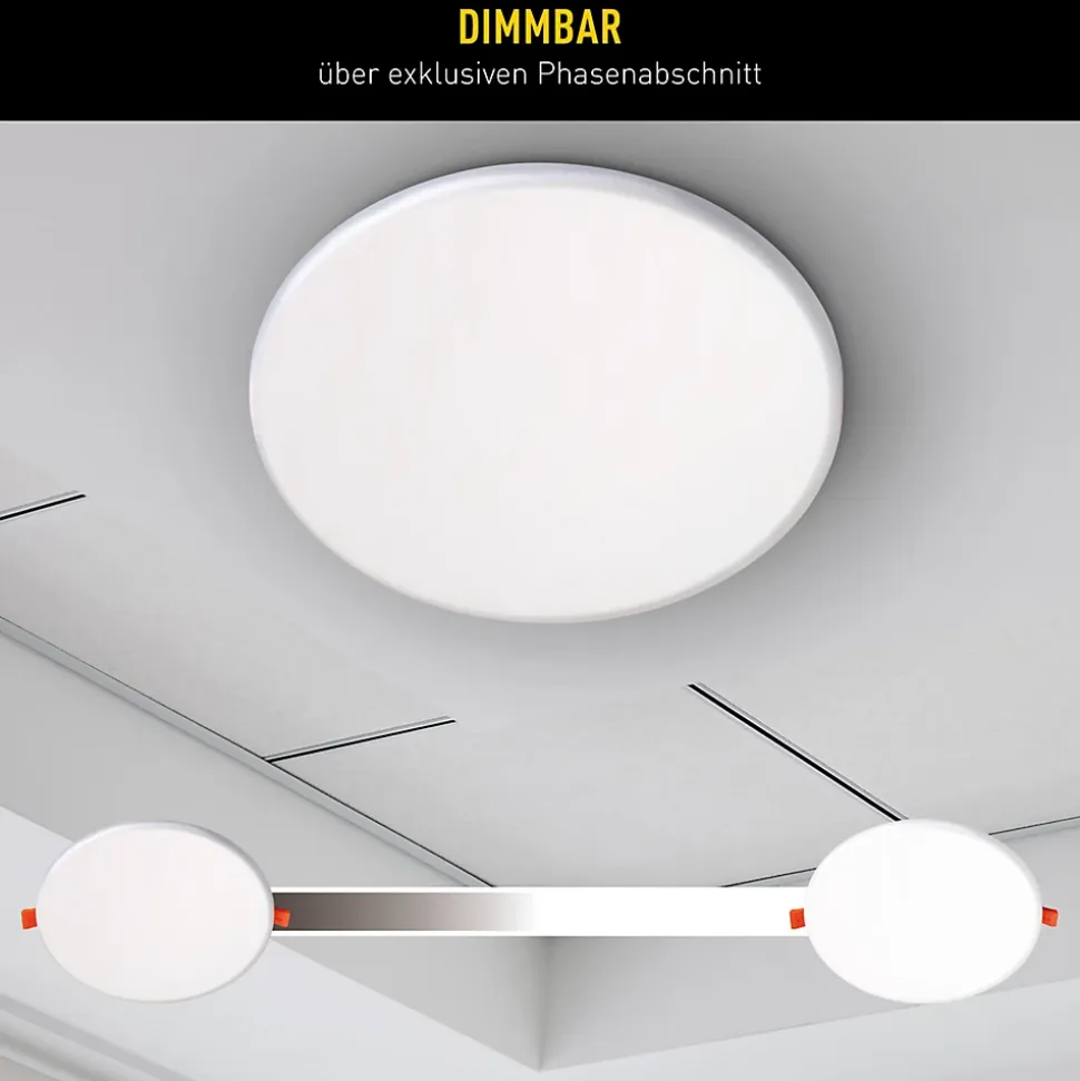 Le luminaire encastré SUMA de notre collection attire tous les regards dans chaque pièce à vivre. Les luminaires encastrés s’intègrent harmonieusement dans tous les styles d’aménagement et créent une atmosphère agréable grâce à leur éclairage discret mais efficace. Son aspect sobre et sa forme ronde font de cette lampe de style moderne un élément indispensable pour tous ceux qui apprécient un aménagement harmonieux. Le luminaire en métal et plastique blanc attire tous les regards dans chaque pièce. La surface de l’abat-jour est mate. Le luminaire encastré mesure 21,5 cm de long, 21,5 cm de large/profondeur et 3,2 cm de haut. Le luminaire a donc un diamètre de 21,5 cm. Avec ce luminaire encastré, vous disposez d’une belle option d’éclairage pour vos pièces à vivre. Avec 1 carte LED équipée de 120 LED, la lumière vient éclairer l’obscurité. Et ce, de manière très attrayante. L’ampoule peut être remplacée par un spécialiste. Ce luminaire est conforme à la classe 2 et à l’indice de protection IP44. Cet appareil est prévu pour être raccordé au secteur et fonctionne avec une tension de 220-240 V ~ 50 Hz. La lampe de 21 watts a une intensité lumineuse de 1700 lumens et une température de couleur de 3000 kelvins. Grâce à sa fonction de variation d’intensité, la luminosité peut être adaptée aux besoins de chacun. Avec notre lampe encastrable, vous créez l’ambiance lumineuse parfaite dans votre intérieur et garantissez une atmosphère agréable.