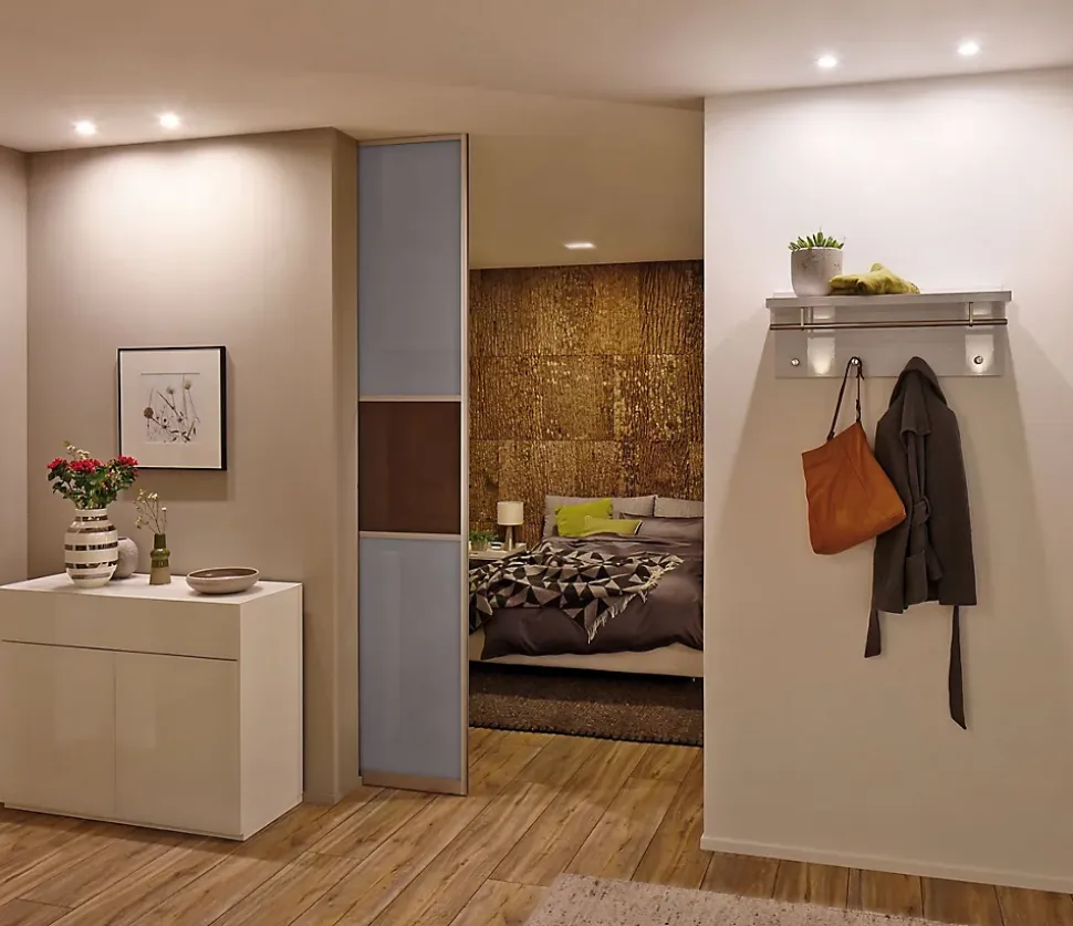 Grâce à URail, vous disposez d’une flexibilité totale en matière d’agencement lumineux et vous apportez la lumière partout où vous en avez besoin : luminaires en suspension modernes surplombant la table à manger, spots flexibles pour un éclairage ciblé des étagères, tableaux et postes de travail ou panneaux pour un éclairage d’intérieur uniforme avec une lumière blanc chaud ou blanc neutre. En tout, jusqu’à 40 mètres de rails et 1000 watts peuvent être reliés. URail étant un système Haute tension 230 V, il ne nécessite pas de transfo et se raccorde directement au réseau électrique. Vous pouvez déplacer facilement les projecteurs et suspensions sur les rails – ce qui est par exemple idéal pour éclairer de grandes tablées. Grâce à des accessoires intelligents, vous pouvez grader votre système sans variateur mural. L’intégration aux systèmes Smart Home se fait de la même façon. Selon la hauteur du plafond, vous pouvez choisir entre deux types de pose : les rails peuvent être directement posés au plafond ou sur des entretoises.