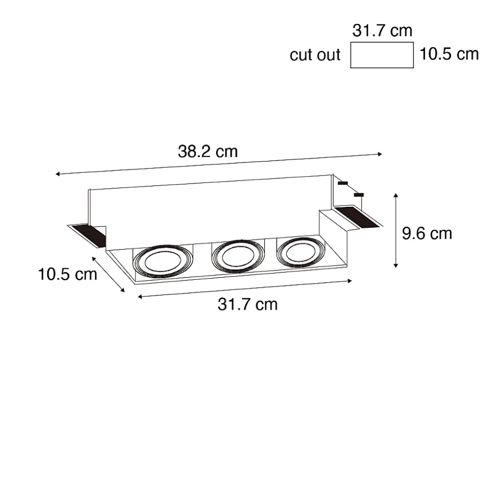 Complétez votre intérieur avec le spot encastré Oneon blanc. Grâce à son design sans bordure, ce spot encastré s’intègre parfaitement au plafond, lui conférant un aspect discret et moderne dans toutes les pièces. Idéal pour divers espaces de vie comme la salle à manger, le couloir ou le bureau. Les dimensions de ce spot encastré sont de 9,6 cm de hauteur, 38,2 cm de longueur et 10,5 cm de largeur, ce qui permet de l’installer facilement dans la plupart des plafonds. Avec ses trois sources lumineuses, il fournit suffisamment d’éclairage pour mettre en valeur et éclairer n’importe quel espace. Le spot encastré Oneon est fourni sans ampoules, il est donc important de commander séparément les ampoules adéquates avec les culots appropriés (AR70 avec culot GU10). Ce spot encastré est compatible avec un variateur, mais celui-ci n’est pas inclus, ce qui vous permet de régler l’ambiance et la luminosité souhaitées.