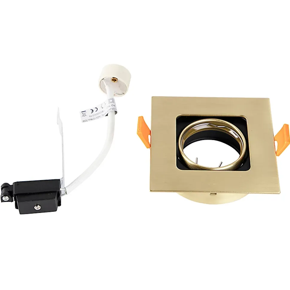 L’Artemis est un spot encastré intemporel, parfait pour un éclairage fonctionnel dans la cuisine ou le salon. Il peut également être parfaitement monté dans le couloir, exactement comme vous le souhaitez ! Le spot est inclinable et orientable, de sorte qu’il peut être dirigé dans n’importe quelle direction lorsqu’il est au plafond. L’intérieur du spot est noir, le large bord carré est fini en or/laiton. Cela fait du spot un véritable accroche-regard. Le point fort de ce spot encastré carré est qu’il peut être monté dans un trou rond. Dimensions d’installation de l’Artemis : diamètre de 9 cm et profondeur de 10 cm. Vous pouvez le compléter avec une ampoule GU10 (50W maximum). La lampe est dimmable avec un variateur externe. Complétez votre intérieur avec l’Artemis !