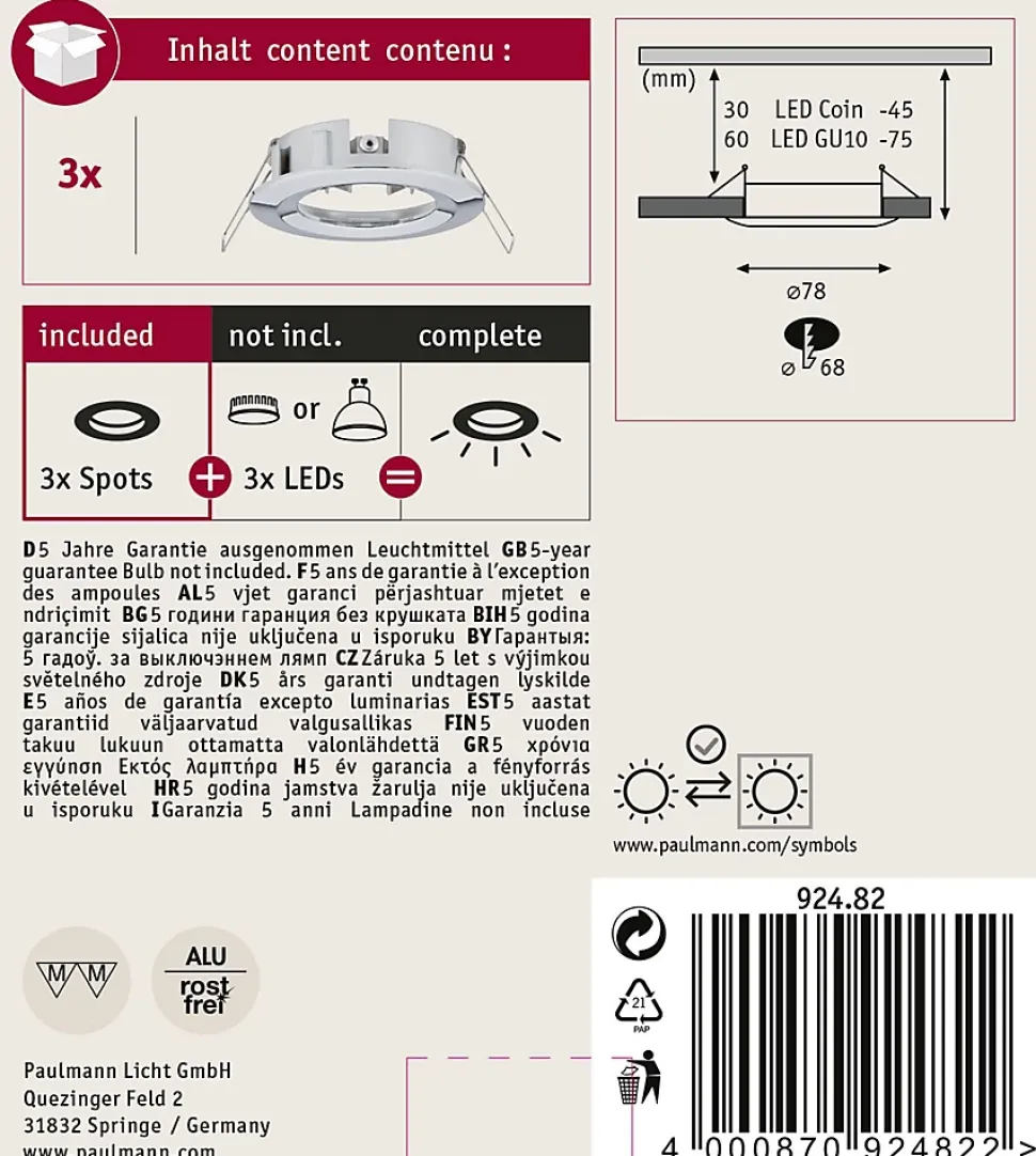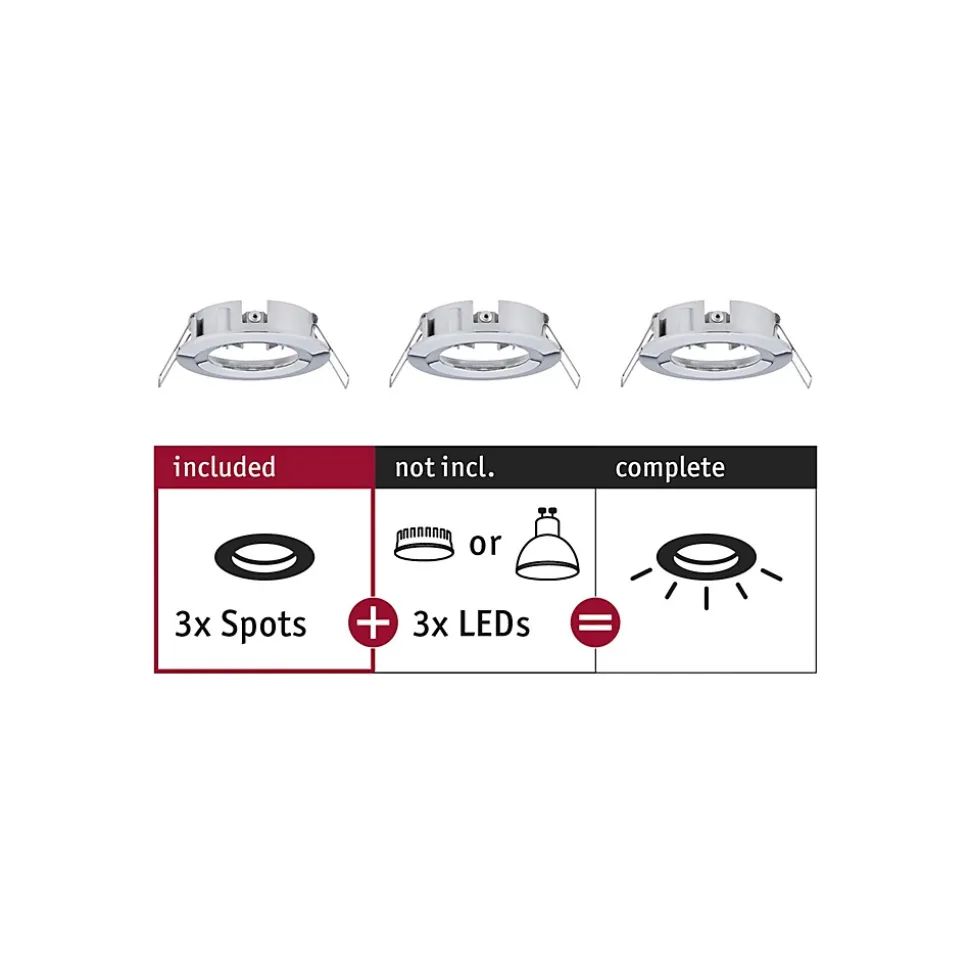 Les bagues de montage fixes en Chrome sont compatibles avec toutes les ampoules de la série Choose. Avec la protection anti-projections d’eau IP44, elles sont adaptées à une utilisation dans les pièces humides. Avec la série Choose, combinez les spots encastrés de votre choix facilement et selon vos envies. Les spots encastrés sont combinables sans restriction et ne requièrent pas de transfo, toutes les ampoules sont remplaçables. Selon l’ampoule utilisée, la lampe est dimmable.