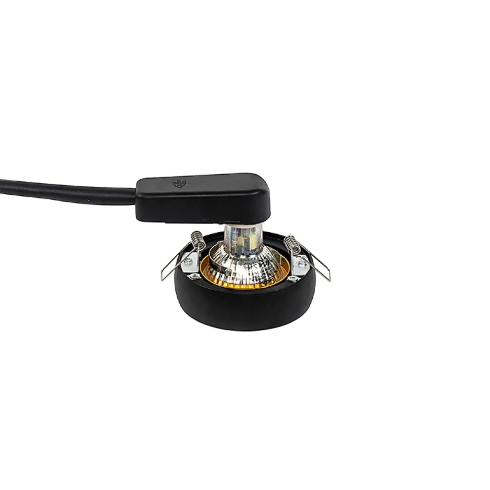 Envie de donner un petit plus à votre maison ou votre bureau ? Le spot encastré Mooning est fait pour vous ! Avec son armature noire et son intérieur doré, ce spot est un véritable attrape-regard. La source lumineuse est au ras du plafond et l’abat-jour de l’ampoule se trouve juste en dessous, créant ainsi un bel effet d’éclairage (direct). L’intérieur doré donne à votre lumière une teinte légèrement plus chaude, pour une ambiance extraordinaire ! Le spot a un diamètre de 8,5 cm et une hauteur de 8 cm. La profondeur d’installation est de 10 cm et le diamètre d’installation de 6,5 cm. Vous pouvez compléter ce spot avec une ampoule GU10 d’une puissance maximale de 50 watts (ampoule non incluse). Vous pouvez atténuer la luminosité de ce spot à l’aide d’un variateur externe (non inclus). Donnez du style à votre intérieur avec le spot encastré Mooning !