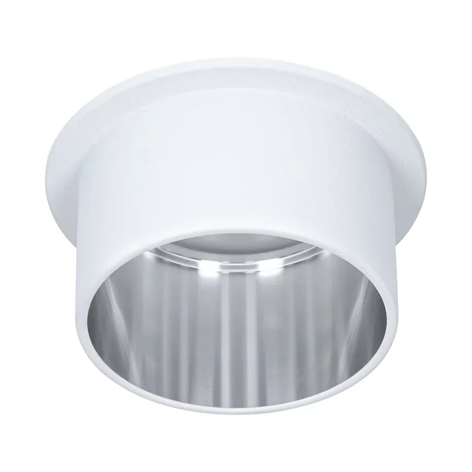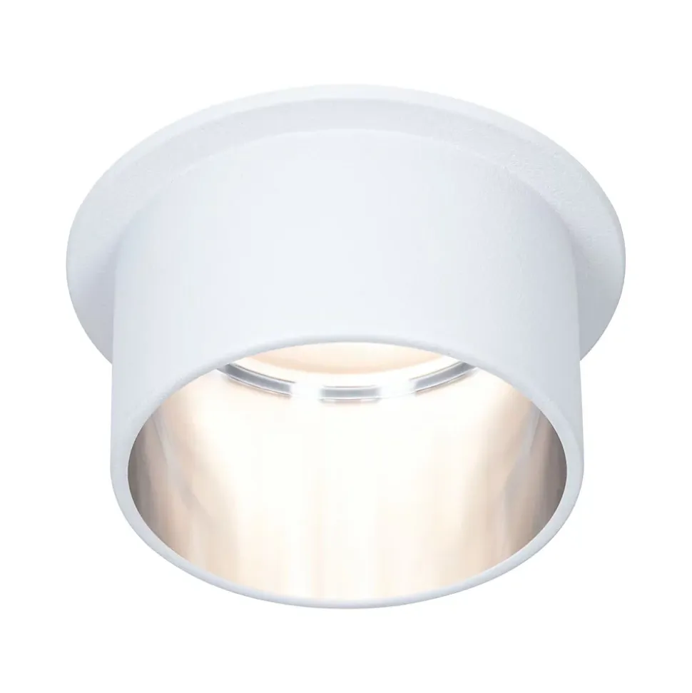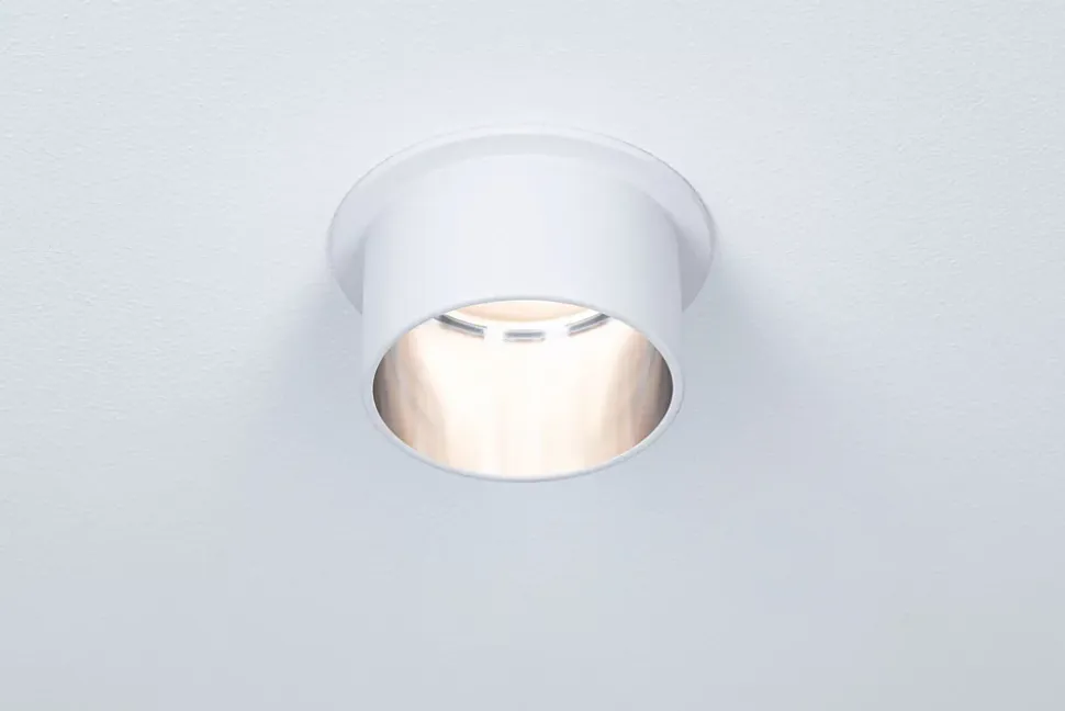 L’encastré décoratif Gil dans la couleur Blanc dépoli#Acier brossé au design bicolore assure un éclairage esthétique et apporte des accents non éblouissants au plafond. Grâce au cylindre décoratif proéminent, une faible profondeur d’encastrement est nécessaire par comparaison avec des points de lumière en retrait. Mais si tôt remarqués, ils aimantent le regard. Les projecteurs convainquent avec une technique brillante : les LED Coin remplaçables diffusent une agréable lumière blanc chaud. Ils se règlent sur trois niveaux avec un interrupteur conventionnel et sont combinables sans restriction. Ils requièrent un diamètre de perçage de 62 mm.
