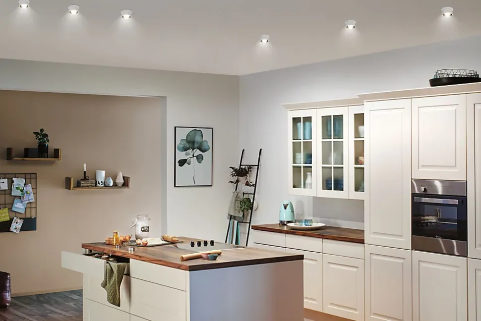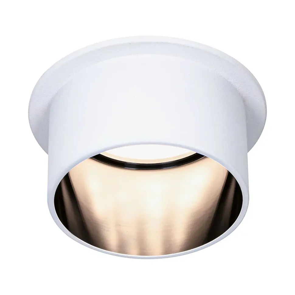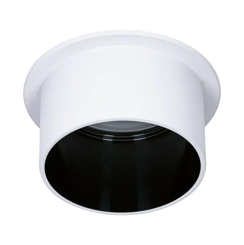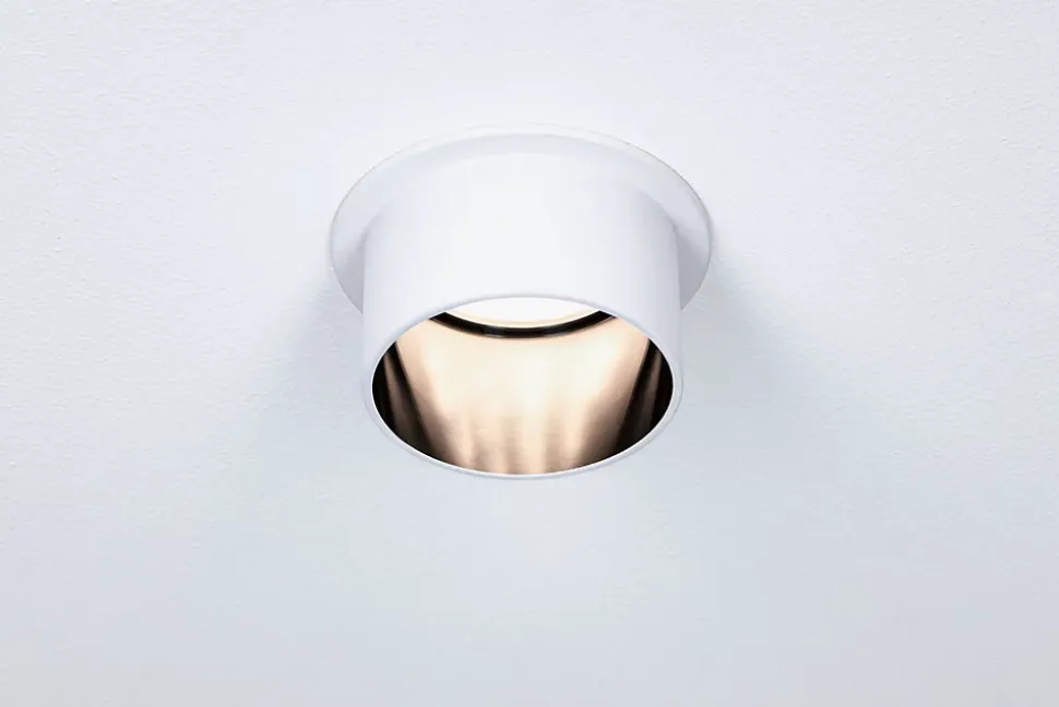 L’encastré décoratif Gil dans la couleur Blanc dépoli#Noir mat au design bicolore assure un éclairage esthétique et apporte des accents non éblouissants au plafond. Grâce au cylindre décoratif proéminent, une faible profondeur d’encastrement est nécessaire par comparaison avec des points de lumière en retrait. Mais si tôt remarqués, ils aimantent le regard. Les projecteurs convainquent avec une technique brillante : les LED Coin remplaçables diffusent une agréable lumière blanc chaud. Ils se règlent sur trois niveaux avec un interrupteur conventionnel et sont combinables sans restriction. Ils requièrent un diamètre de perçage de 62 mm.
