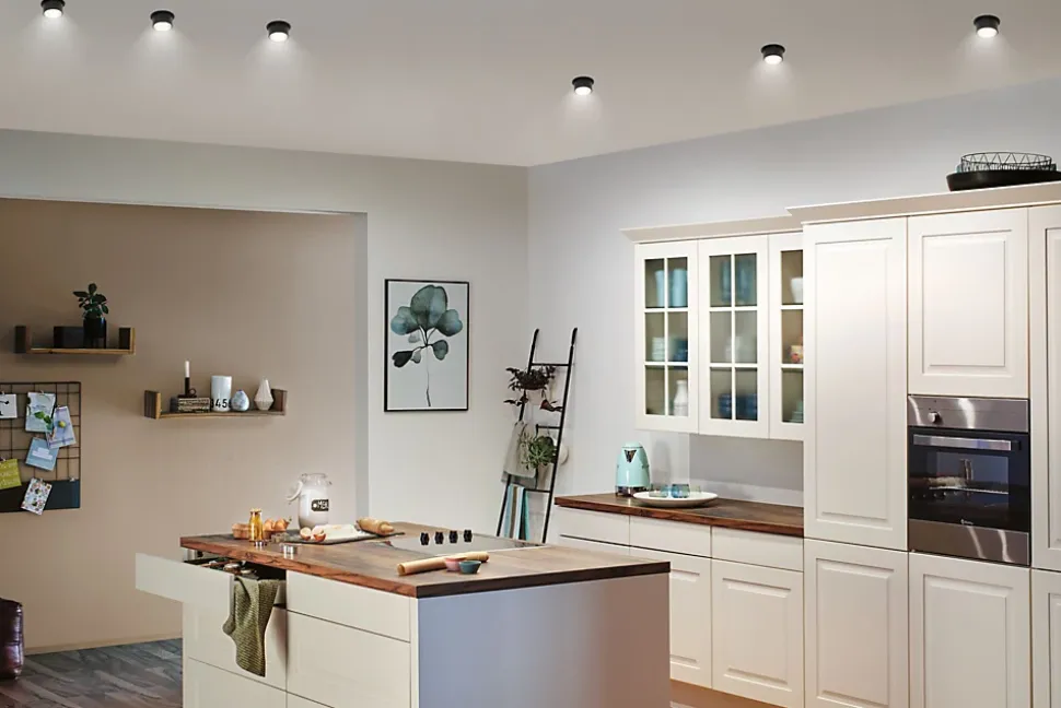 - Spots à technologie LED interchangeables, réglables en trois étapes et connectables en chaîne.