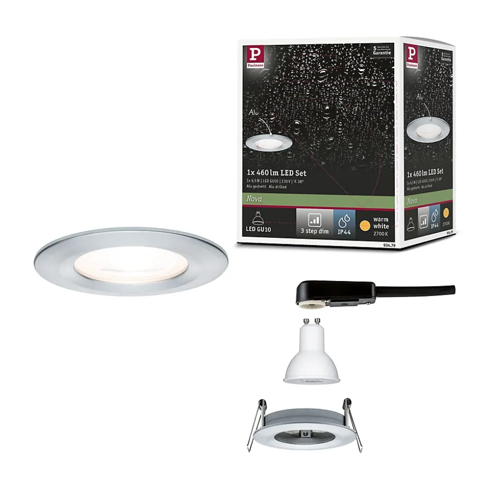 Le spot encastré Nova rond en Alu tourné avec 6,5W et 460lm offre une lumière agréable, un design adapté et une haute efficacité énergétique. Orientables, les spots diffusent la lumière précisément là où vous le souhaitez. Le style pur n’est pas dévalorisé par des circlips : Comme l’ampoule est insérée par l’arrière, nul besoin de circlip. Grâce à la connexion 230 V directe, vous pouvez très facilement connecter des luminaires entre eux sans aucune limite. La fixation simple par ressorts de retenue conserve le plafond intact, même après plusieurs montages et démontages. La livraison inclut des ampoules LED GU10 performantes et durables dont la lumière blanc chaud crée une atmosphère conviviale. La fonction 3-Step-Dim intégrée vous permet de naviguer entre trois intensités de lumière en actionnant plusieurs fois un simple commutateur traditionnel.