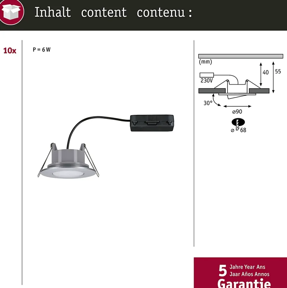 Les luminaires Calla 10x6W de couleur Chrome mat, sont des spots encastrés anti-éblouissement en Matière plastique, qui conviennent aussi bien à l’équipement de nouvelles installations qu’au remplacement d’équipements existants. Ces luminaires se relient facilement et de manière illimitée entre eux grâce à la connexion directe 230V. La livraison inclut des ampoules LED qui avec leur lumière blanc neutre créent une atmosphère conviviale.