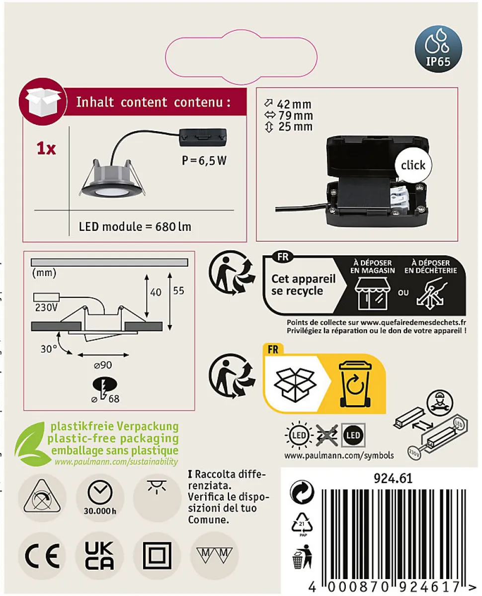 Il est compact, personnalisable et extrêmement lumineux. Flexible dans ses possibilités, le spot encastré LED Calla avec 1x6W en Noir mat trouve surtout sa place dans les pièces humides. Le spot encastré anti-éblouissant en plastique convient aussi bien à l’équipement de nouvelles installations qu’au remplacement d’équipements existants. Pourvu de la protection contre les projections d’eau IP65, le luminaire ne craint pas l’humidité. Orientables, les spots diffusent la lumière précisément là où vous le souhaitez. Grâce à la connexion 230 V directe, vous pouvez connecter les luminaires entre eux à loisir. La livraison inclut des ampoules LED dont la lumière blanc neutre crée une atmosphère conviviale.
