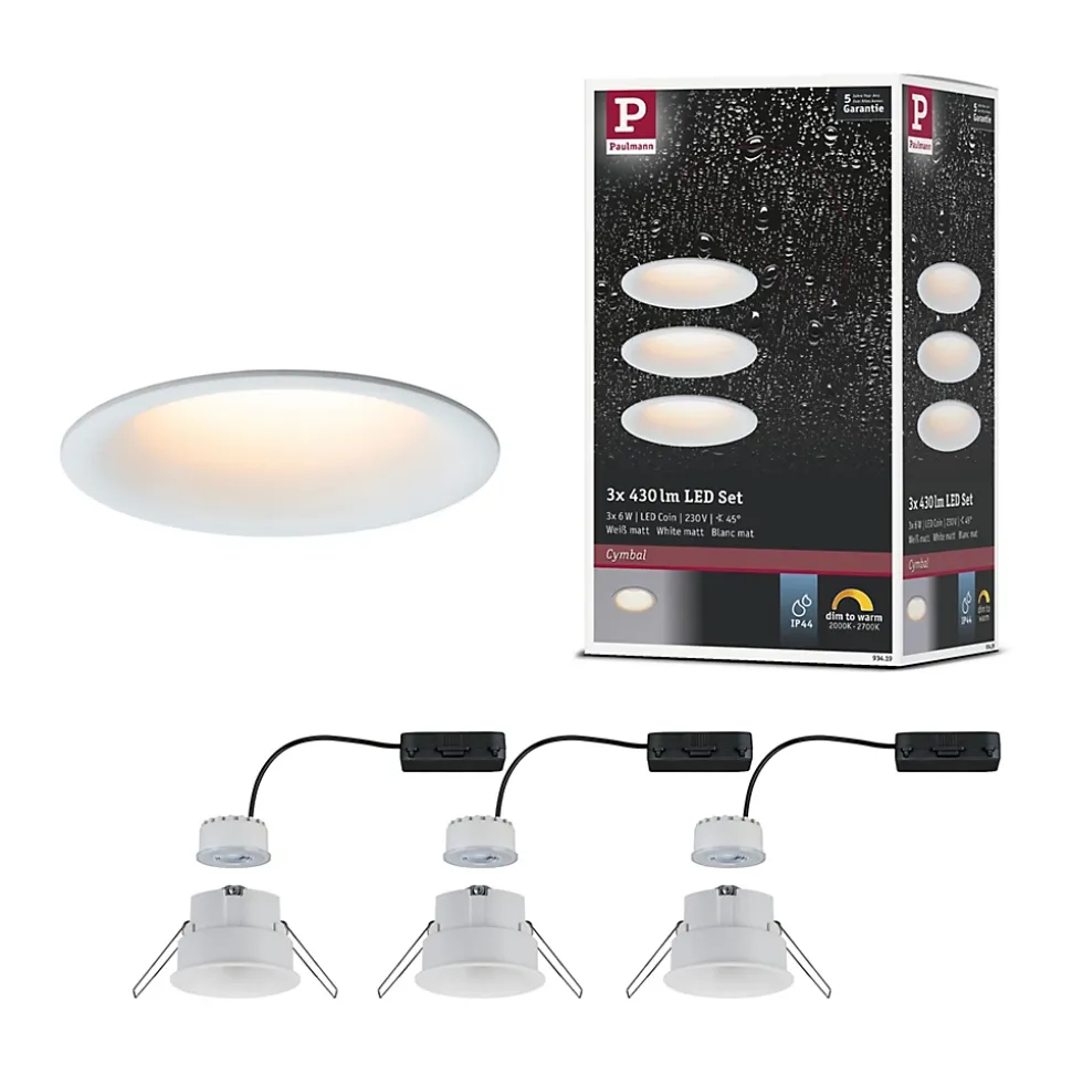 Variation de température de blanc chaud|Kit composé de 3 luminaires fourni avec module LED|Protection IP : IP44 – Protection contre les projections d’eau|Température de couleur: 2700K – Blanc chaud|Pour raccordement direct au secteur 230V