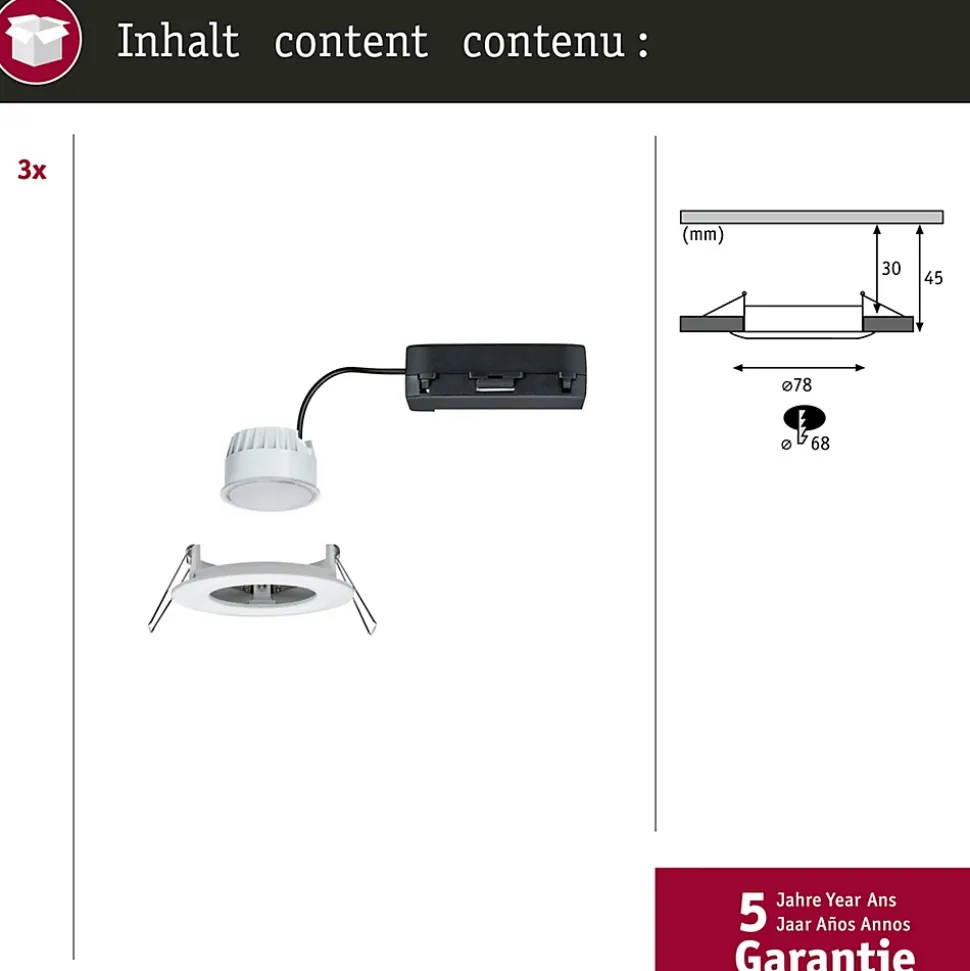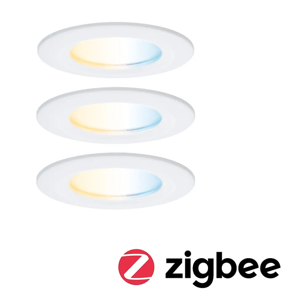 Kit composé de 3 luminaires fourni avec module LED|protection ip : ip 44 – protection contre des projections d’eau|Tunable White offre un choix infini, de lumière dorée (2200 K) à blanc lumière du jour (6500 K)|La fonction de mémoire enregistre le dernier niveau utilisé jusqu’à la prochaine mise en marche.|S’intègre parfaitement aux infrastructures Zigbee Smart Home existantes.|Possibilité de continuer à allumer et éteindre via l’interrupteur d’éclairage|Profondeur d’encastrement réduite (45 mm)|Raccordement direct au 230 V grâce aux Coins connectables
