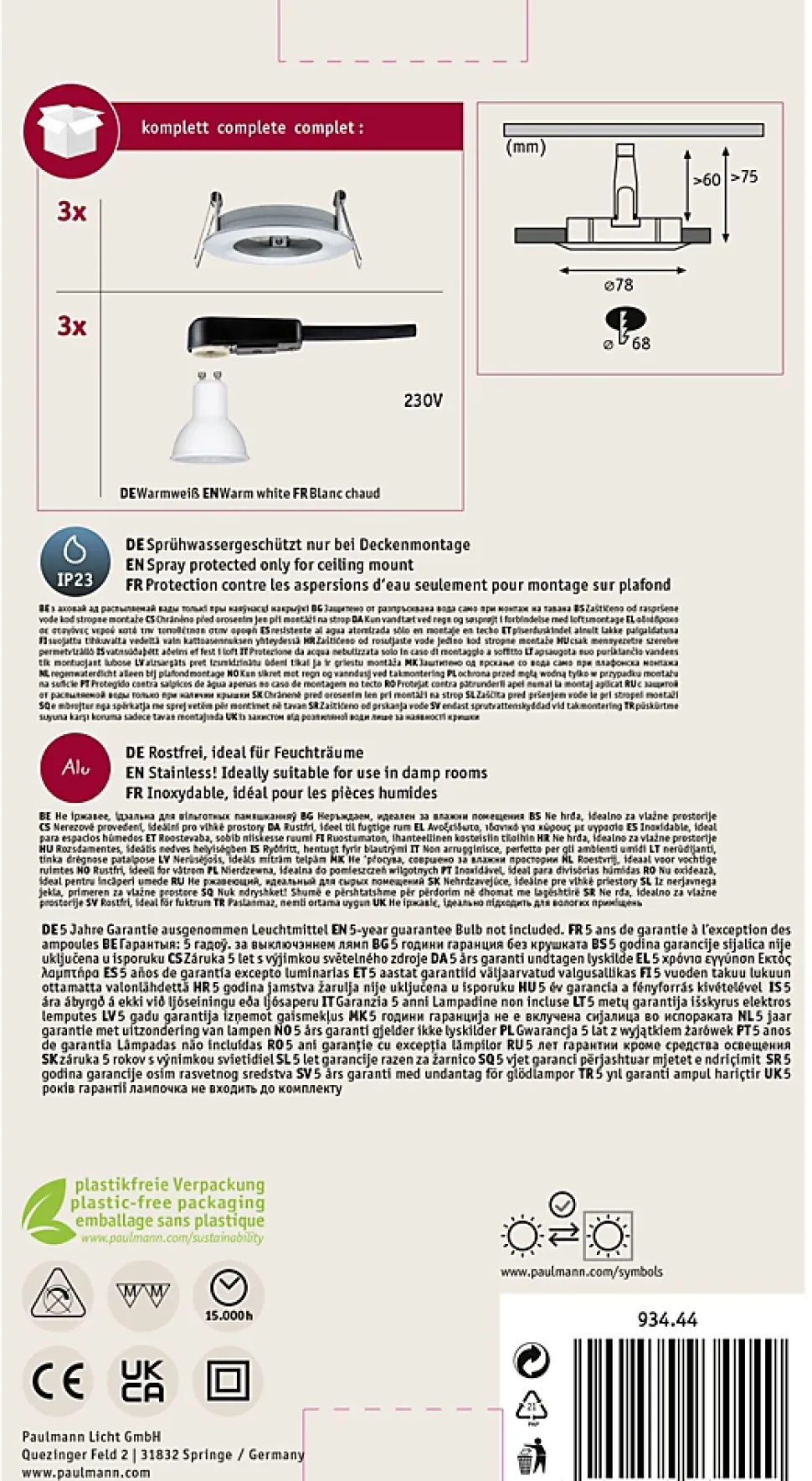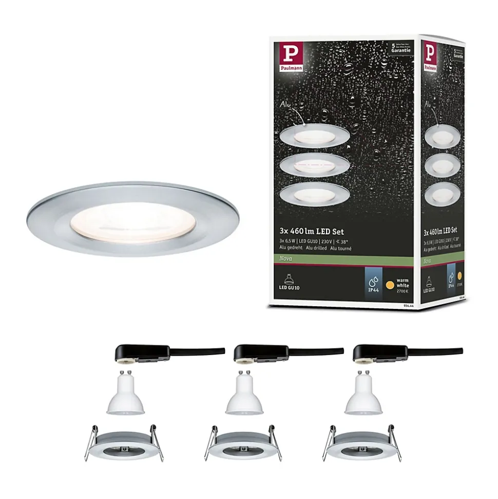 Les spots encastrés Nova ronds en Alu tourné avec 3×6,5W et 3x460lm offrent une lumière agréable, un design adapté et une haute efficacité énergétique. Le style pur n’est pas dévalorisé par des circlips : Comme l’ampoule est insérée par l’arrière, nul besoin de circlip. Grâce à la connexion 230 V directe, vous pouvez très facilement connecter des luminaires entre eux sans aucune limite. La fixation simple par ressorts de retenue conserve le plafond intact, même après plusieurs montages et démontages. La livraison inclut des ampoules LED GU10 performantes et durables dont la lumière blanc chaud crée une atmosphère conviviale.