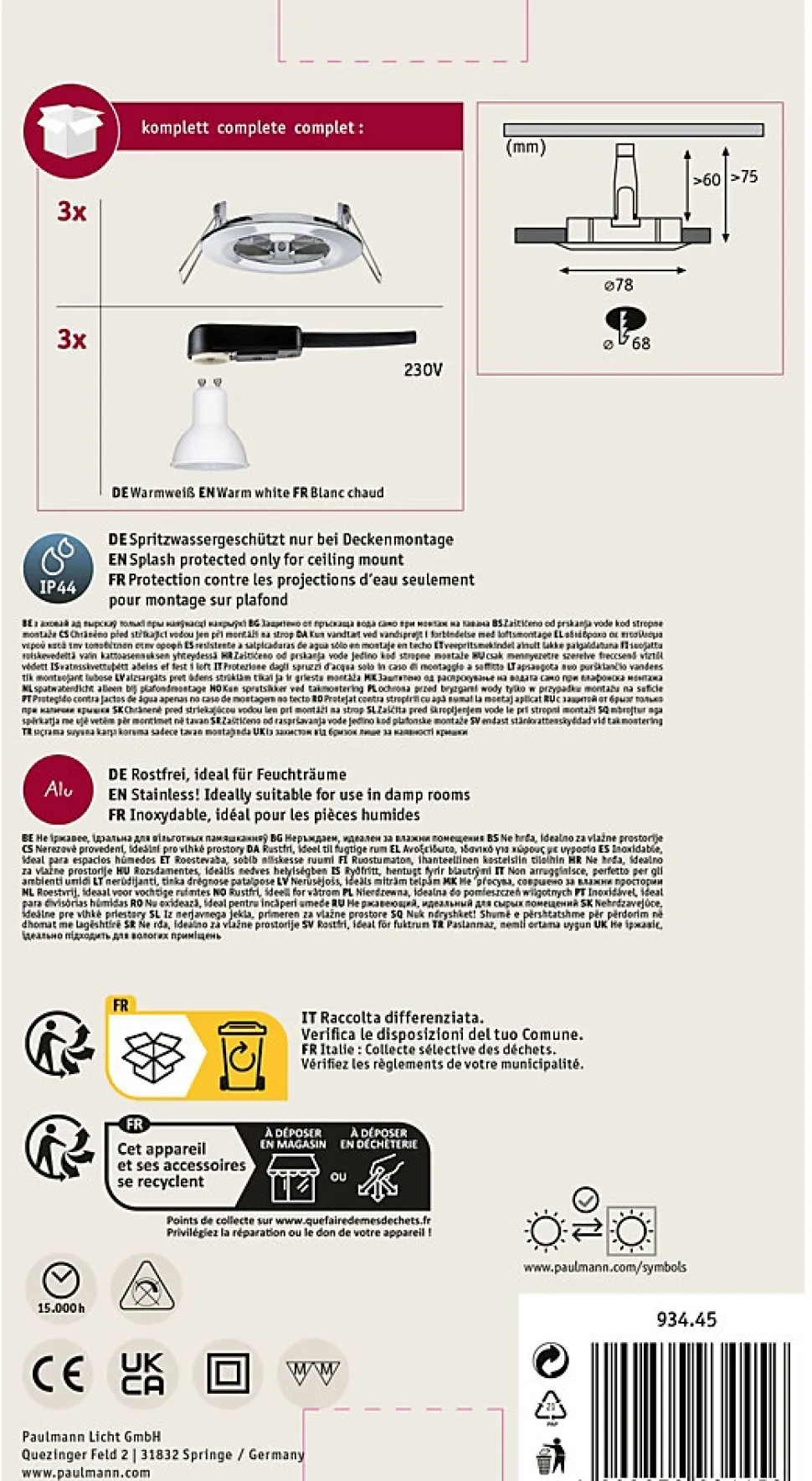 Les spots encastrés Nova ronds en chrome avec 3×6,5W et 3x460lm offrent une lumière agréable, un design adapté et une haute efficacité énergétique. Le style pur n’est pas dévalorisé par des circlips : Comme l’ampoule est insérée par l’arrière, nul besoin de circlip. Grâce à la connexion 230 V directe, vous pouvez très facilement connecter des luminaires entre eux sans aucune limite. La fixation simple par ressorts de retenue conserve le plafond intact, même après plusieurs montages et démontages. La livraison inclut des ampoules LED GU10 performantes et durables dont la lumière blanc chaud crée une atmosphère conviviale.