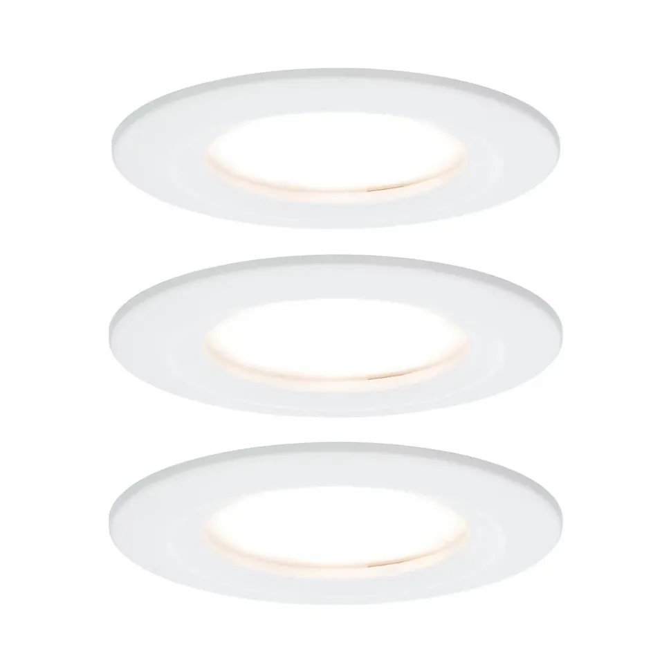 Les spots encastrés Nova Plus ronds en (kit de 3) en Blanc dépoli avec LED-Coin remplaçable, conviennent aussi bien à l’équipement de nouvelles installations qu’au remplacement d’équipements existants. De forme particulièrement plate, ils s’intègrent dans les plafonds disposant d’un espace creux de 30 mm seulement. Grâce à un raccordement par clips de fixation rapides, les luminaires individuels sont simples et rapides à monter. Leur variateur d’intensité permet un ajustement individuel de la luminosité offrant deux effets majeurs : vous jouissez d’une lumière de travail blanc chaud tout en baignant dans une ambiance cocooning. Avec leur protection anti-projections d’eau IP44, ces luminaires garantissent une lumière chaleureuse tant dans la salle de bain que dans la cuisine.