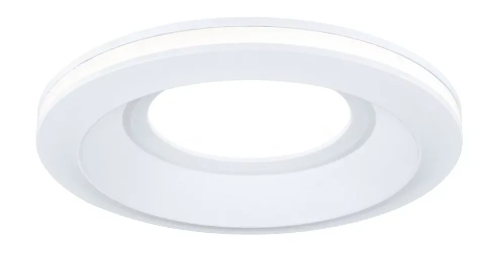 Le kit de spots encastrés Sormus en Blanc est la solution idéale pour créer une ambiance lumineuse dans la salle de bains, où la fonctionnalité s’allie au design moderne. Avec la protection IP65, le luminaire est préservé de la pénétration des jets d’eau et convient donc parfaitement pour les locaux humides ou l’extérieur. La diffusion lumineuse extra-large assure un éclairage lumineux qui, avec une température de couleur de 3000 K, plonge la pièce dans une couleur de feu blanc chaud. L’un des points forts du spot encastré Sormus est sa commande d’éclairage flexible, qui permet de choisir entre un éclairage lumineux de la salle de bains et des accents lumineux décoratifs. En appuyant plusieurs fois sur un interrupteur conventionnel, vous pouvez choisir entre un éclairage principale, un anneau décoratif éclairé ou une combinaison des deux. Le spot encastré Sormus présente une profondeur d’encastrement d’à peine 55 mm, ce qui permet de l’installer dans des faux plafonds peu profonds. Le boîtier de raccordement pratique permet un raccordement direct en 230 V et permet de raccorder les luminaires entre eux très facilement et sans restriction.