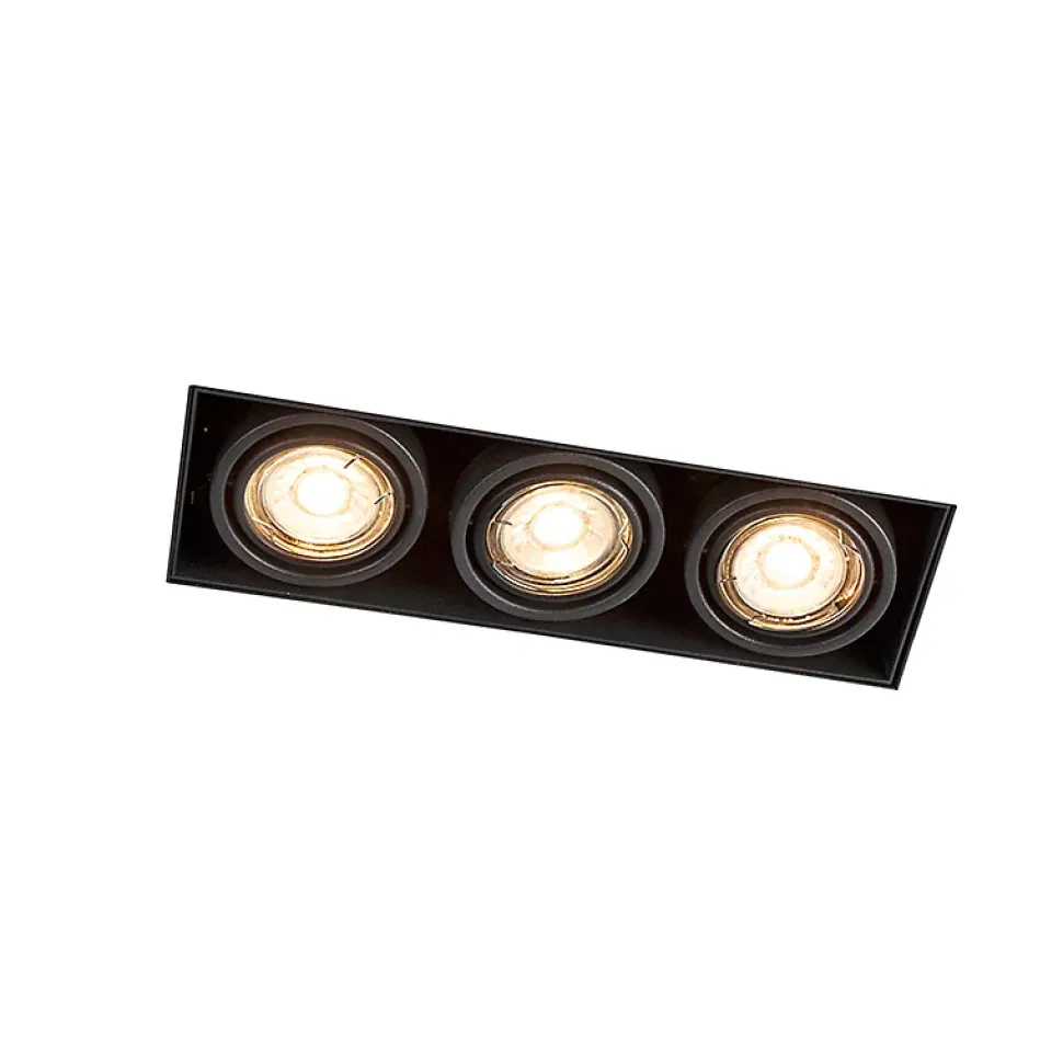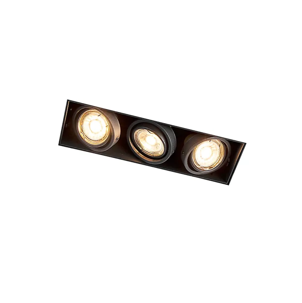Notre Oneon Trimless est le spot encastré idéal. L’appareil est sans bordure, ce qui signifie qu’il n’y a pas de bord extérieur autour de l’appareil et que vous pouvez ainsi l’installer parfaitement et sans bordure dans votre plafond. Le plafond semble ainsi se prolonger et l’éclairage devient partie intégrante de toute la surface. Le spot mesure 26,9 cm de long et 8,8 cm de large. Vous montez le cadre sur le placoplâtre. Il est réglable et vous pouvez le régler au préalable à l’épaisseur correcte de la couche de plâtre afin que le bord soit au niveau du plâtre. Le cadre peut également être monté jusqu’à 3 cm du plafond. Attention ! La hauteur du cadre dissimulé est de 10 cm. Une fois cette opération effectuée, vous pouvez très facilement clipser l’appareil en place, puis les trois ampoules GU10, chacune d’une puissance maximale de 50 watts (à commander séparément). Les trois sources lumineuses peuvent être inclinées individuellement. Vous pouvez ainsi choisir la direction du faisceau lumineux. Si vous souhaitez créer une ambiance cosy en soirée, vous pouvez également atténuer ces spots à l’aide d’un variateur externe (non inclus). Ce spot encastré est disponible en noir, ce qui crée un beau contraste entre le plafond et l’éclairage. Un spot idéal à utiliser comme éclairage principal dans le salon, la chambre à coucher ou la cuisine !