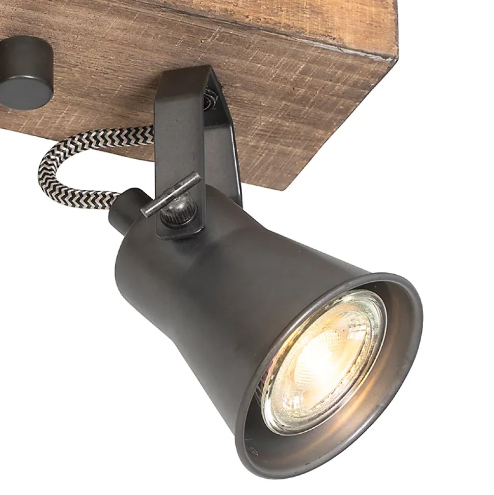 Vous recherchez un spot robuste ? Le spot rustique Jelle est exactement ce qu’il vous faut ! Il peut être placé au plafond ou contre le mur. À vous de choisir ! Fabriqué en bois et en acier, il conserve ses couleurs naturelles. Le spot mesure 14 cm de haut, 24 cm de long et 80 cm de large. La plaque de montage mesure 3 cm de haut, 21 cm de long et 8 cm de large. Les abat-jour ont chacun un diamètre de 7 cm et une hauteur de 8 cm. Vous pouvez compléter le spot Jelle avec deux ampoules, chacune avec un culot GU10 (8W maximum). N’oubliez pas de les commander séparément. Le spot est compatible avec un variateur externe (non inclus). Les spots peuvent être orientés séparément, vous pouvez donc décider où la lumière doit briller. Donnez à votre couloir, votre salon ou votre chambre à coucher un look rustique avec le spot Jelle.