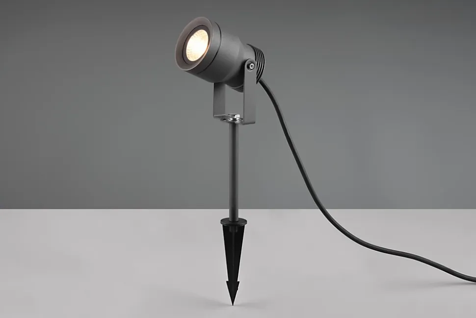 Les caractéristiques techniquesLe spot LED extérieur Mareb de Trio est conçu pour offrir un éclairage ciblé et performant dans votre jardin, allée ou espace extérieur. Grâce à son piquet de sol inclus, il se plante facilement dans la terre pour un montage rapide et sans outils.Ce spot est équipé d’une LED SMD intégrée de 11W qui fournit 1000 lumens avec une température de couleur de 3000K, idéale pour créer une ambiance chaleureuse.Sa structure robuste en fonte d’aluminium lui confère une excellente durabilité, tandis que son indice de protection IP65 le rend parfaitement étanche à la poussière et aux projections d’eau.Les avantages esthétiques et fonctionnelsLe spot Mareb est orientable, ce qui permet de diriger la lumière précisément là où vous en avez besoin : valorisation d’un arbre, d’un massif floral, d’un mur ou d’un chemin.Son design discret en anthracite s’intègre facilement à tout type d’aménagement paysager.La technologie LED intégrée offre une grande efficacité énergétique avec une durée de vie de 30 000 heures et jusqu’à 80 % d’économies par rapport à un éclairage halogène traditionnel.Ce spot est également respectueux de l’environnement grâce à une faible émission de chaleur et à une consommation réduite.Un luminaire fonctionnel, élégant et économique pour sublimer votre extérieur tout en le sécurisant.